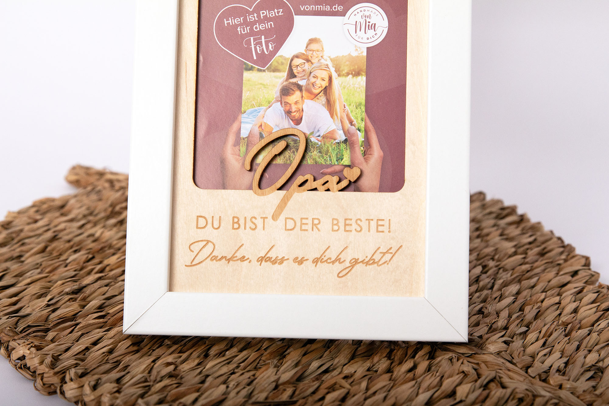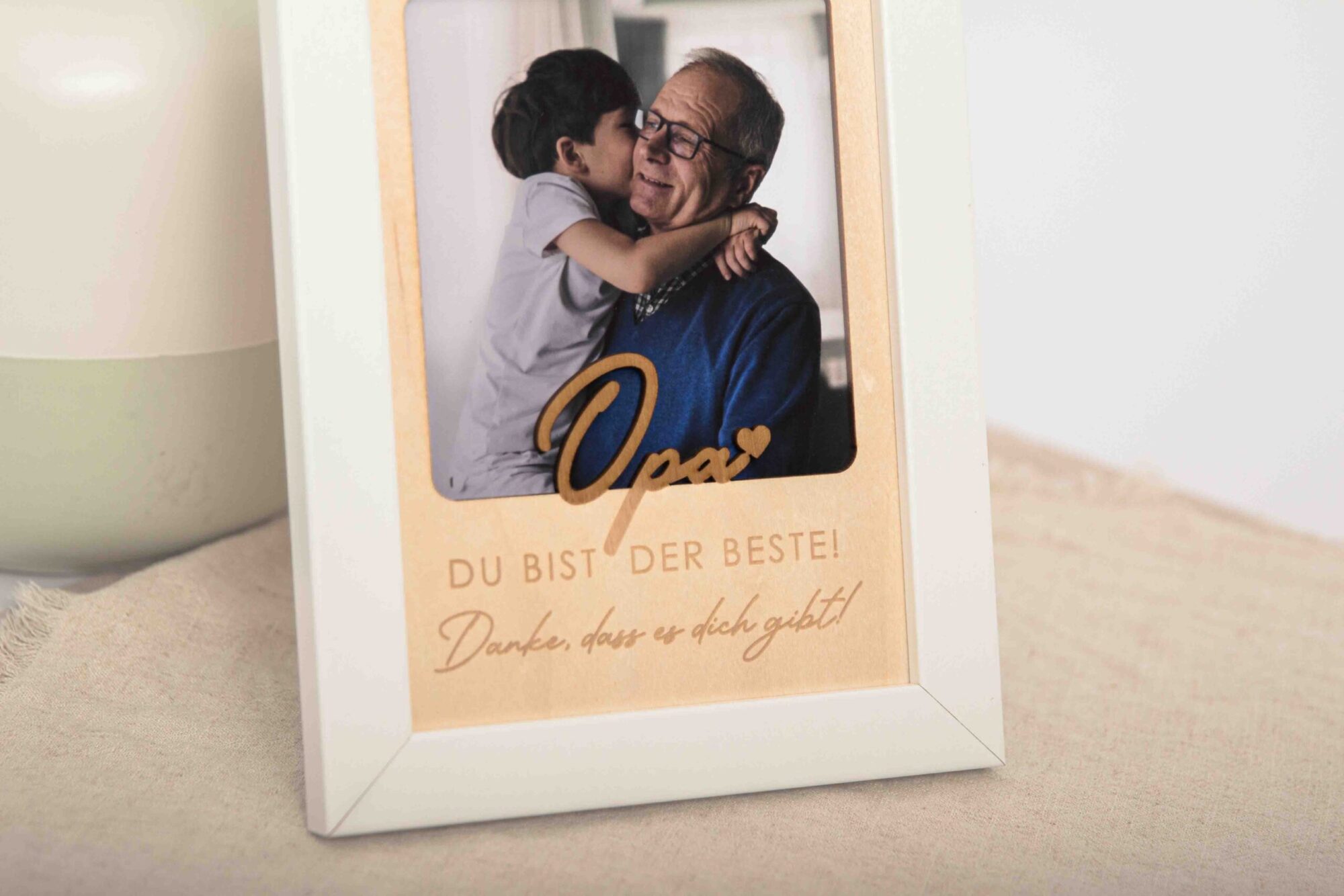 Ein wunderschönes, persönliches Geschenk für Opa! Das Birkenholz und die Gravur sind top. Mit unserem Foto ein echter Hingucker mit WOW-Effekt!