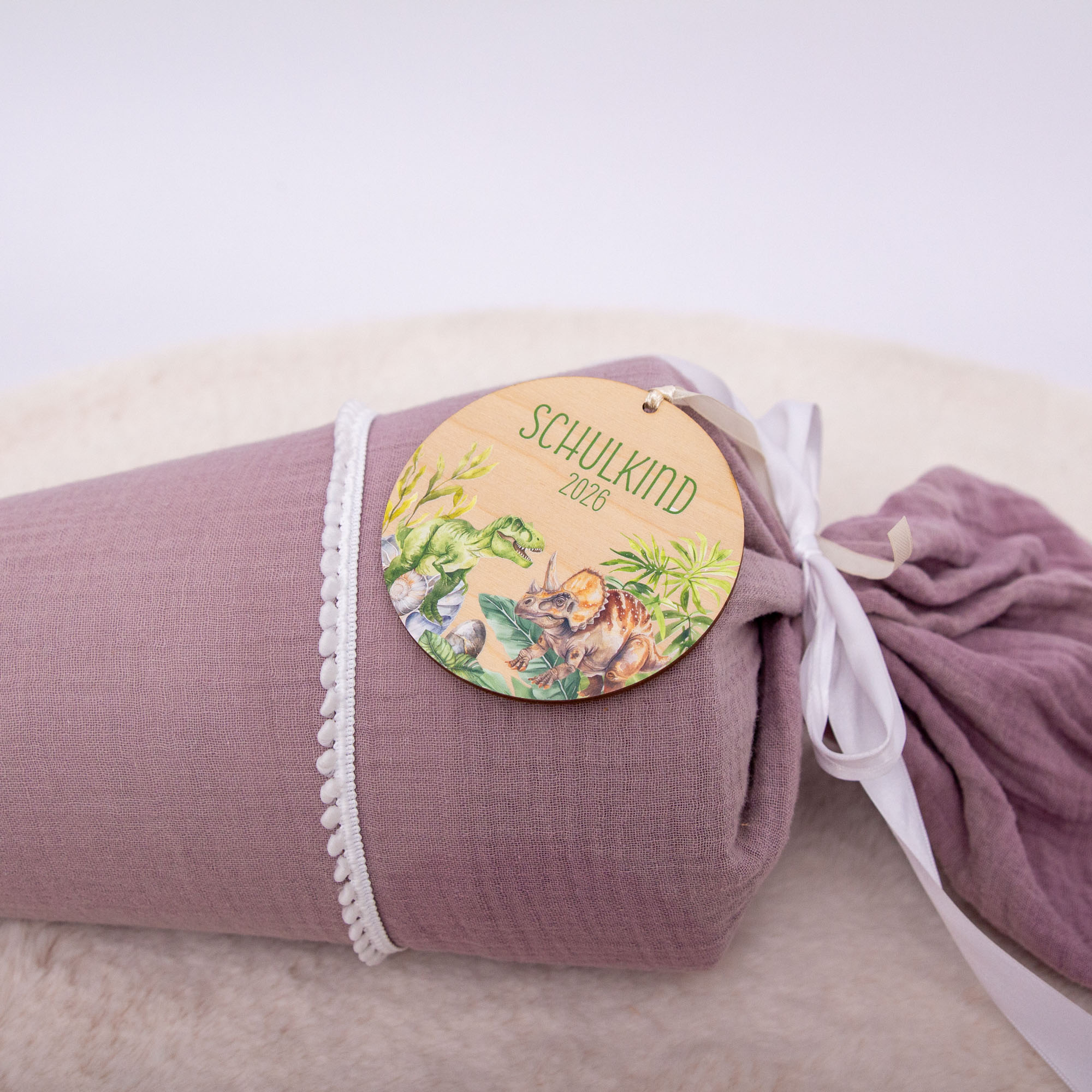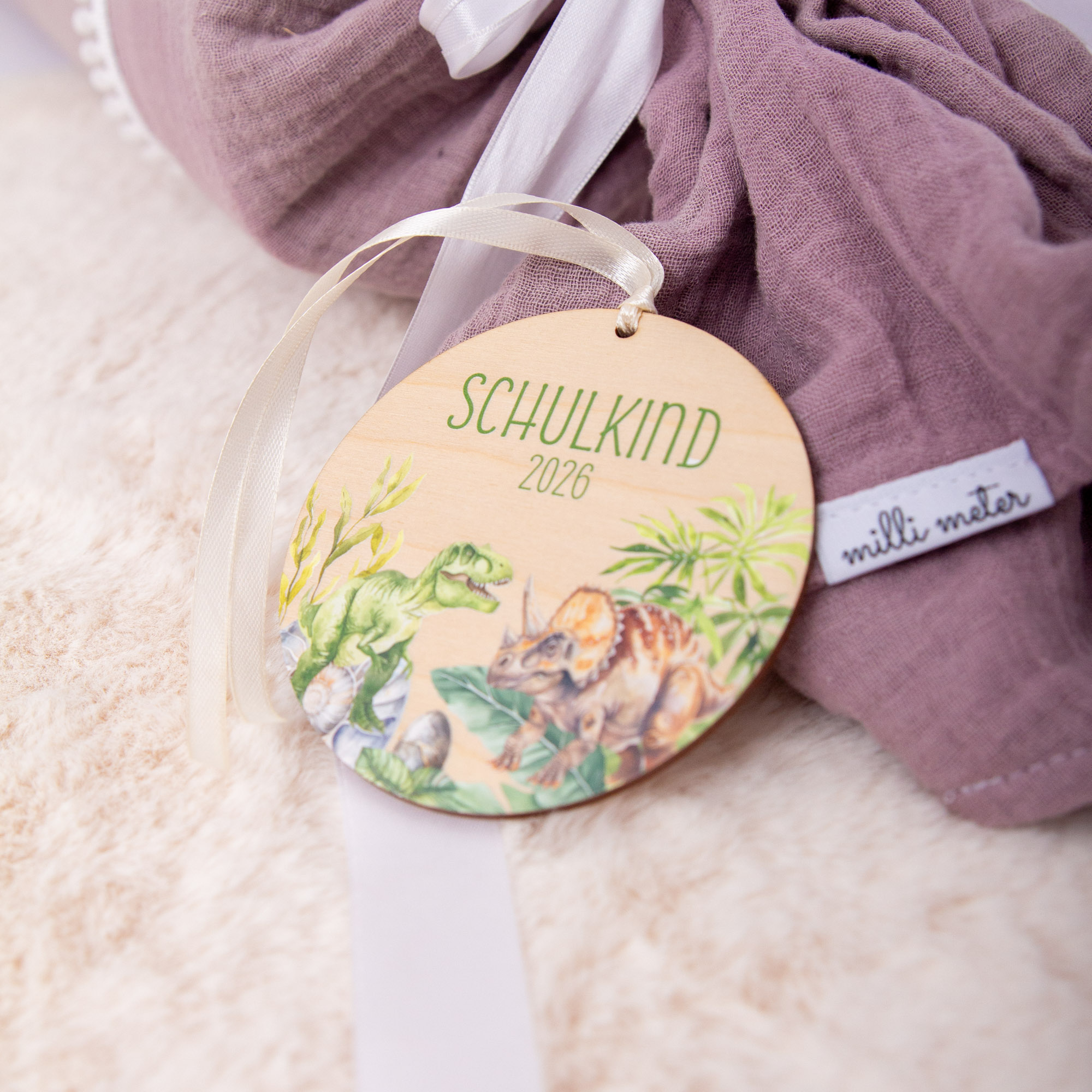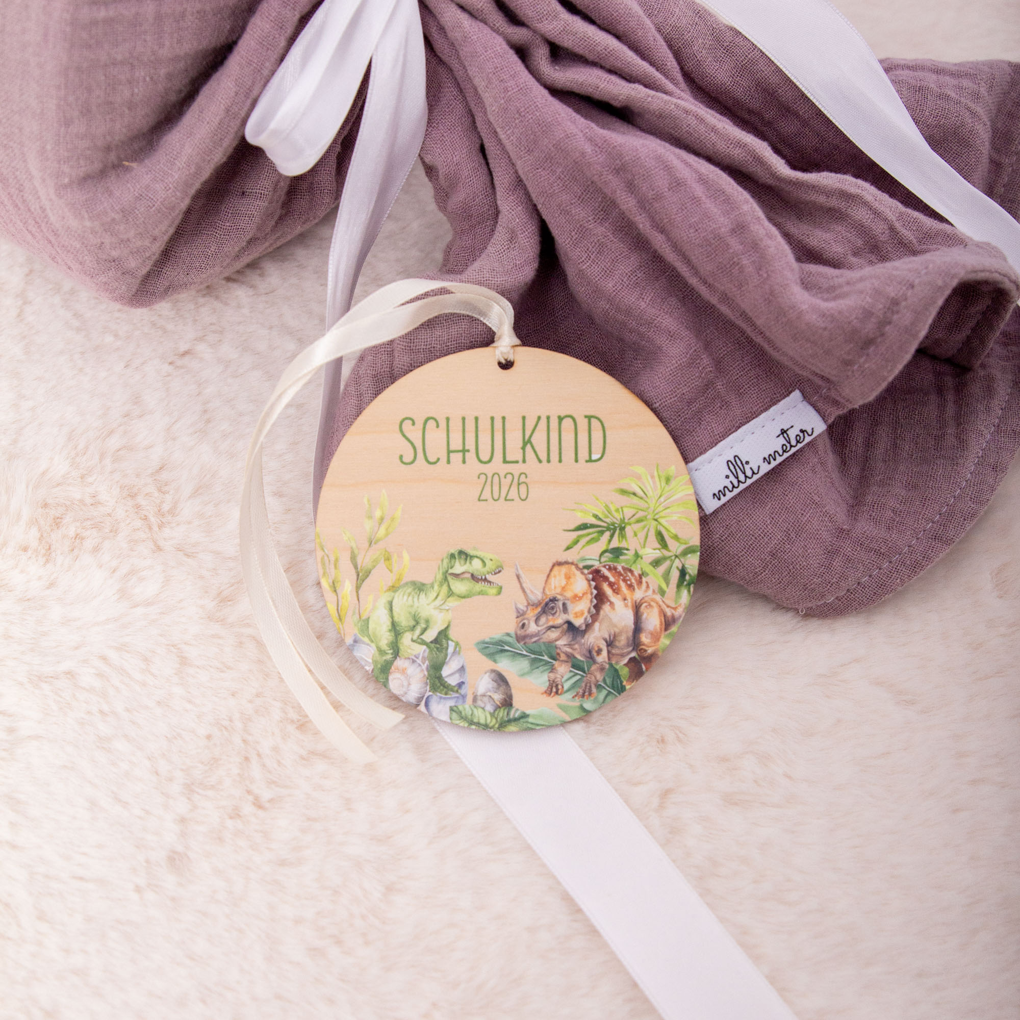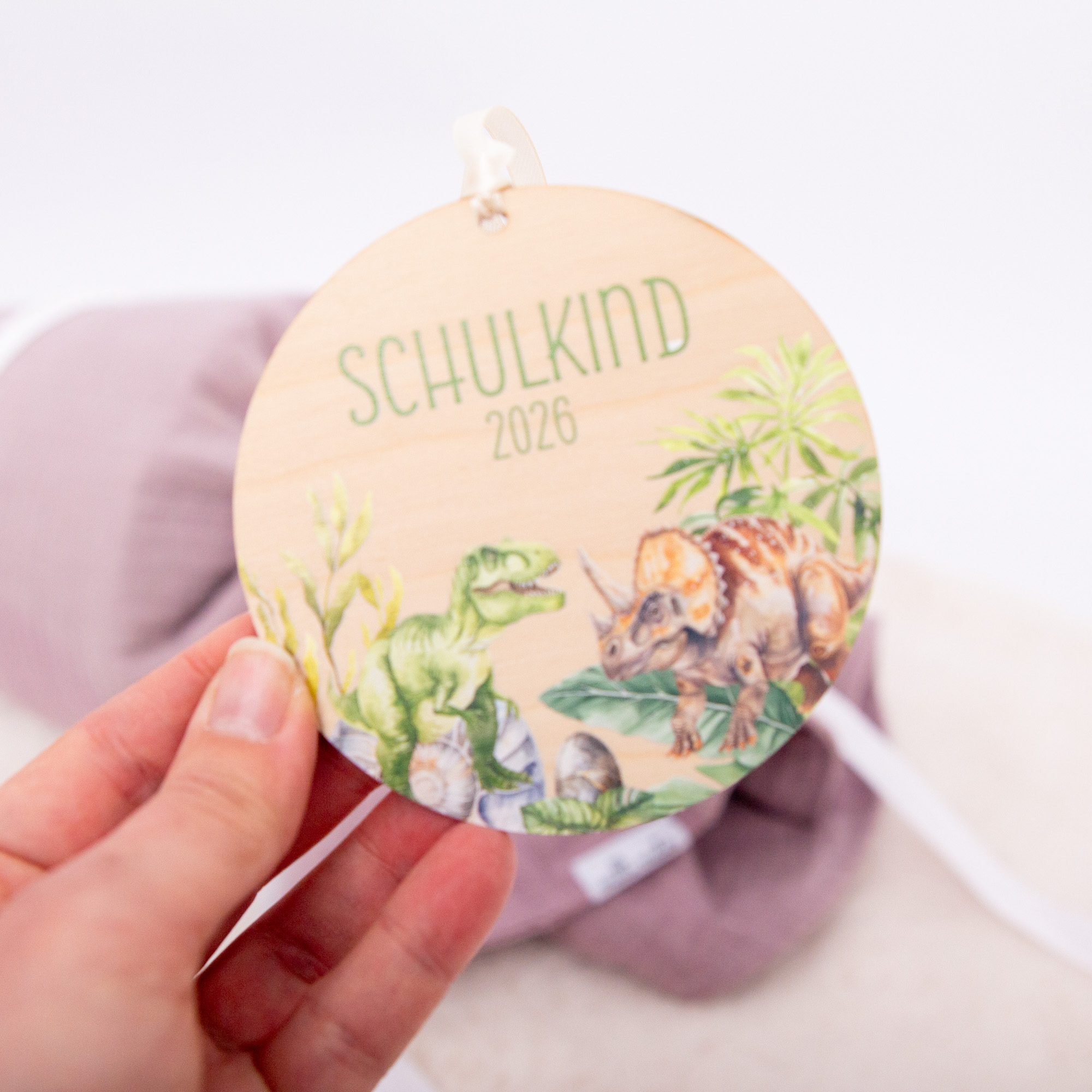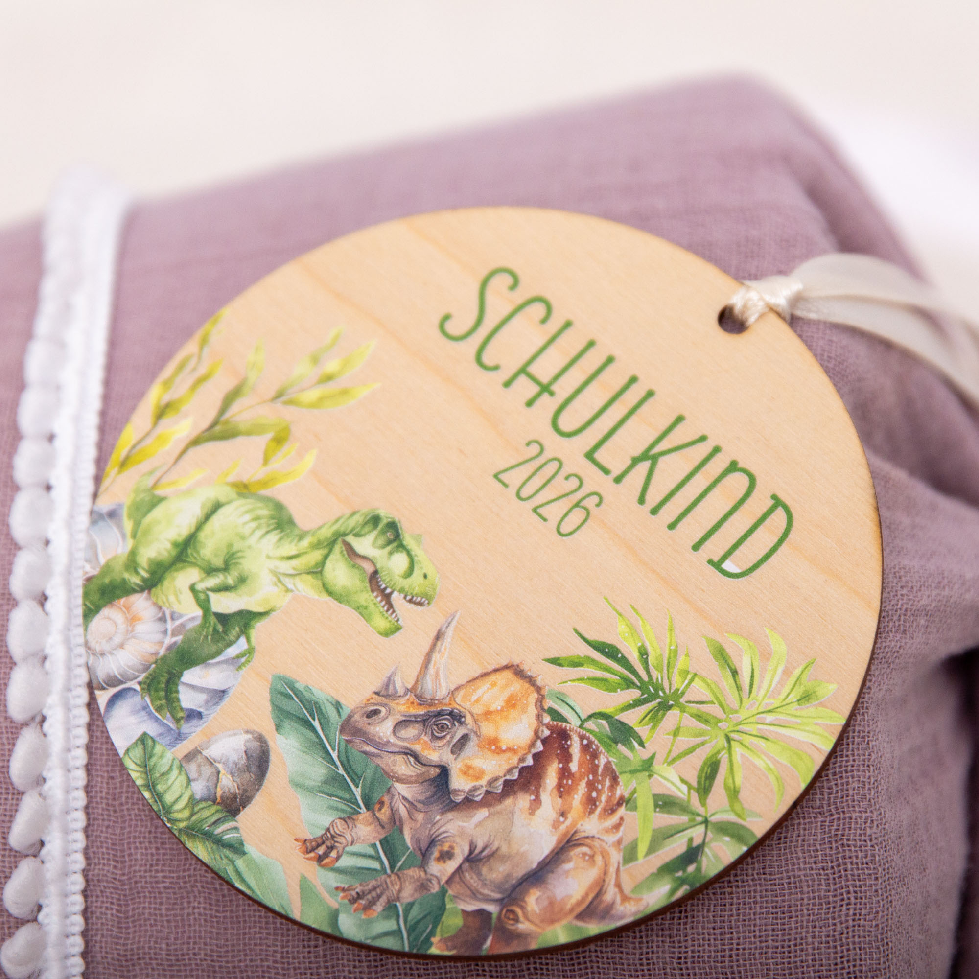 Dinosaurier Zuckertütenanhänger / Namensanhänger Einschulung 2026 / Zuckertütenanhänger Dino aus Holz / Geschenkanhänger