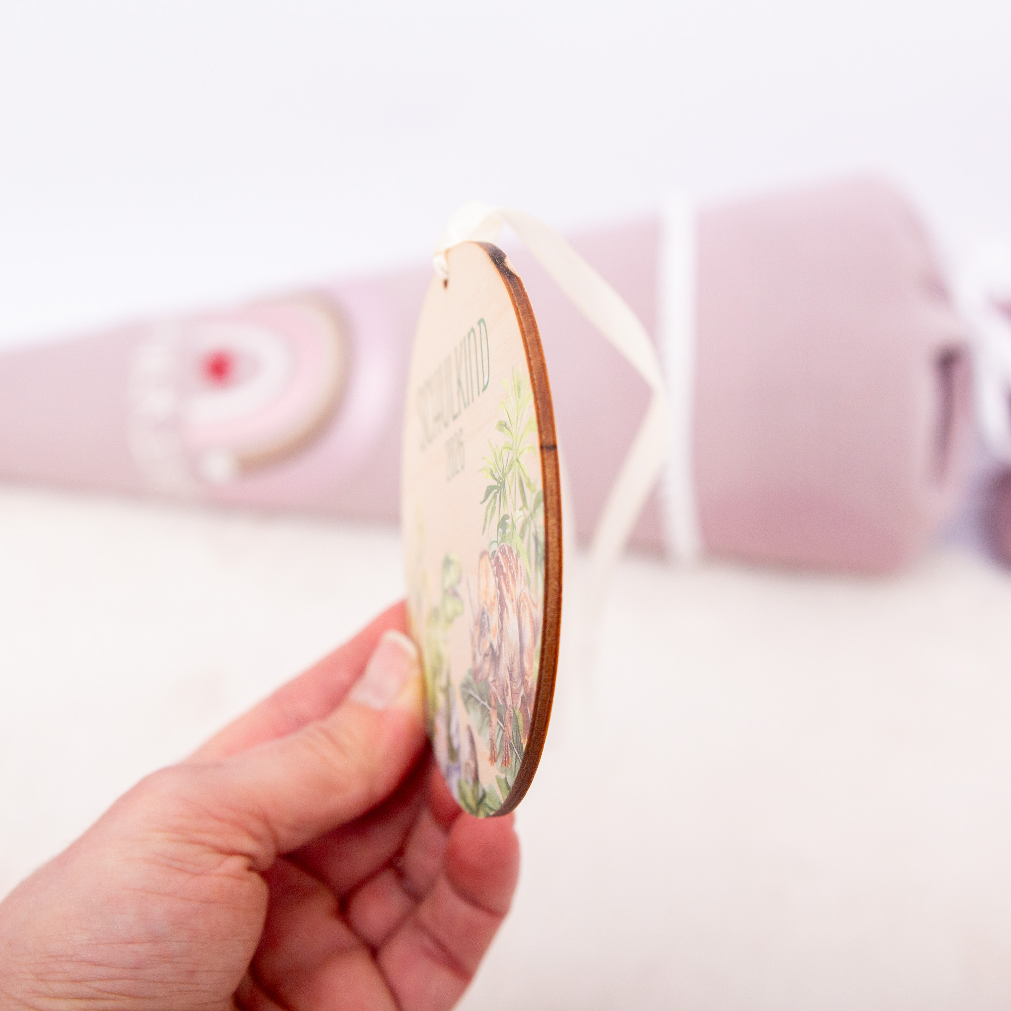 Anhänger Zuckertüte mit Nachname / Namensanhänger Einschulung 2025 / Zuckertütenanhänger aus Holz mit Name, verschiedene Farben und Formen