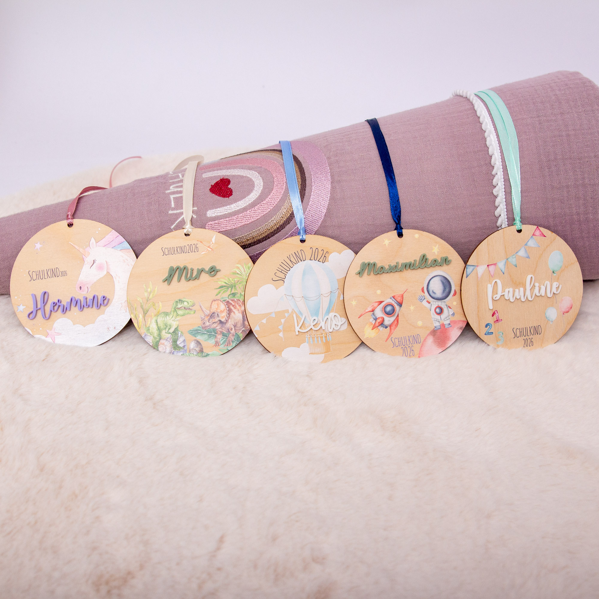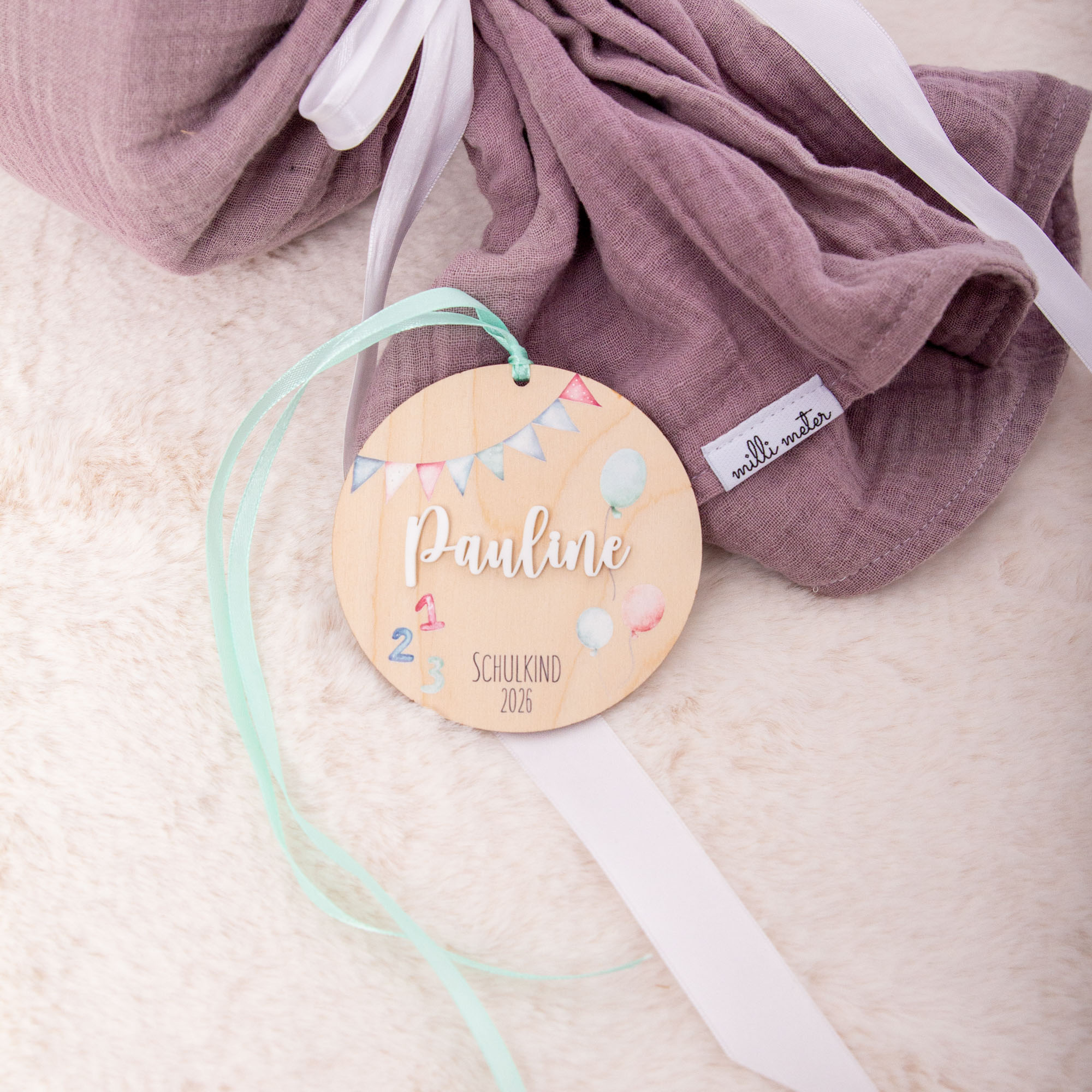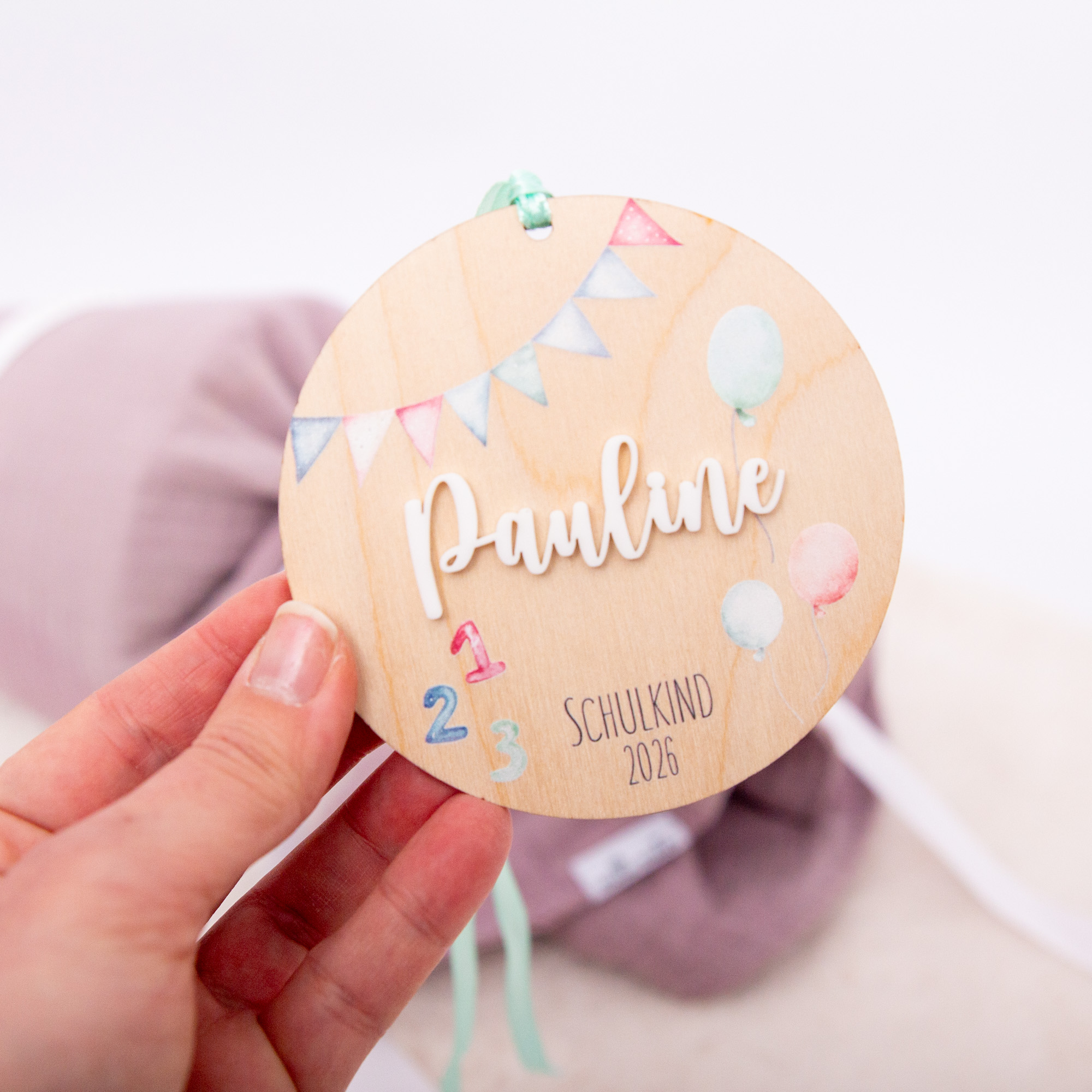 Wimpel Zuckertütenanhänger mit Name / Namensanhänger Einschulung 2026 / Zuckertütenanhänger aus Holz mit Name / Geschenkanhänger