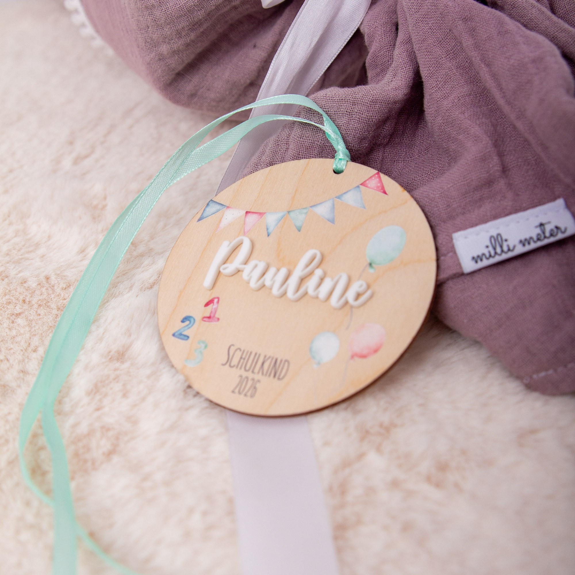 Du suchst ein besonderes Geschenk zur Einschulung, eine ganze individuelle Deko für die Zuckertüte oder einen Namensanhänger fürs Einschulungsgeschenk? Unsere Anhänger sind liebevoll designt und werden mit eurem Wunschnamen personalisiert. Diese Anhänger werden aus Birkenholz hergestellt, im UV Direktdruck Verfahren bedruckt und mit grünem Matt-Acryl personalisiert. Sie sind 10 cm hoch bzw. breit und mit einem Loch zur Aufhängung versehen. Die Aufschrift ist Schulkind 2025. Wer ein anderes Jahr eingraviert haben möchte, bitte unbedingt mit in die Personalisierung schreiben.