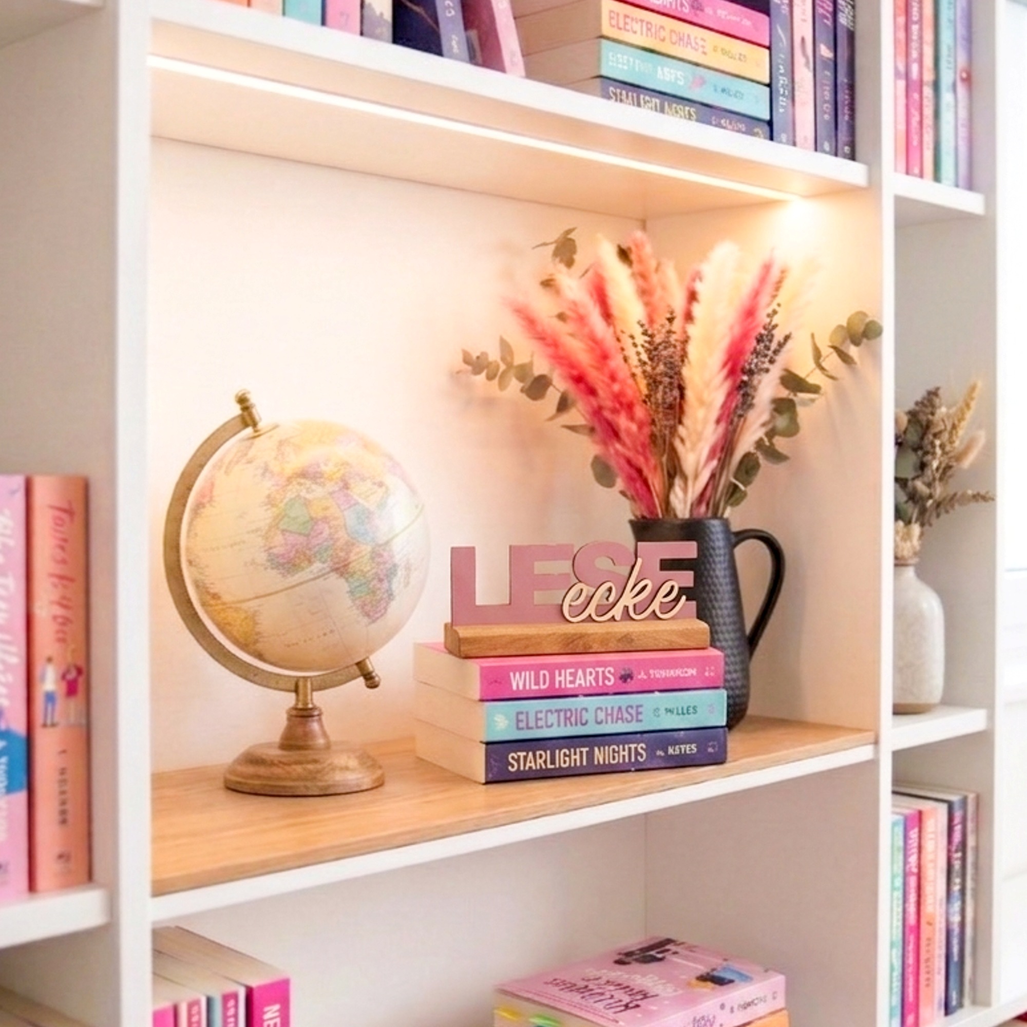 Jeder Buchwurm hat diesen einen besonderen Platz – die eigene Lese-Ecke. Mit unserem handgefertigten Holz-Aufsteller verleihst du deinem persönlichen Rückzugsort den passenden Rahmen. Ob direkt im Bücherregal zwischen deinen „Must-reads“ oder auf dem Beistelltisch neben deinem Lieblingssessel: Dieses Statement-Piece macht deine Leidenschaft sichtbar.