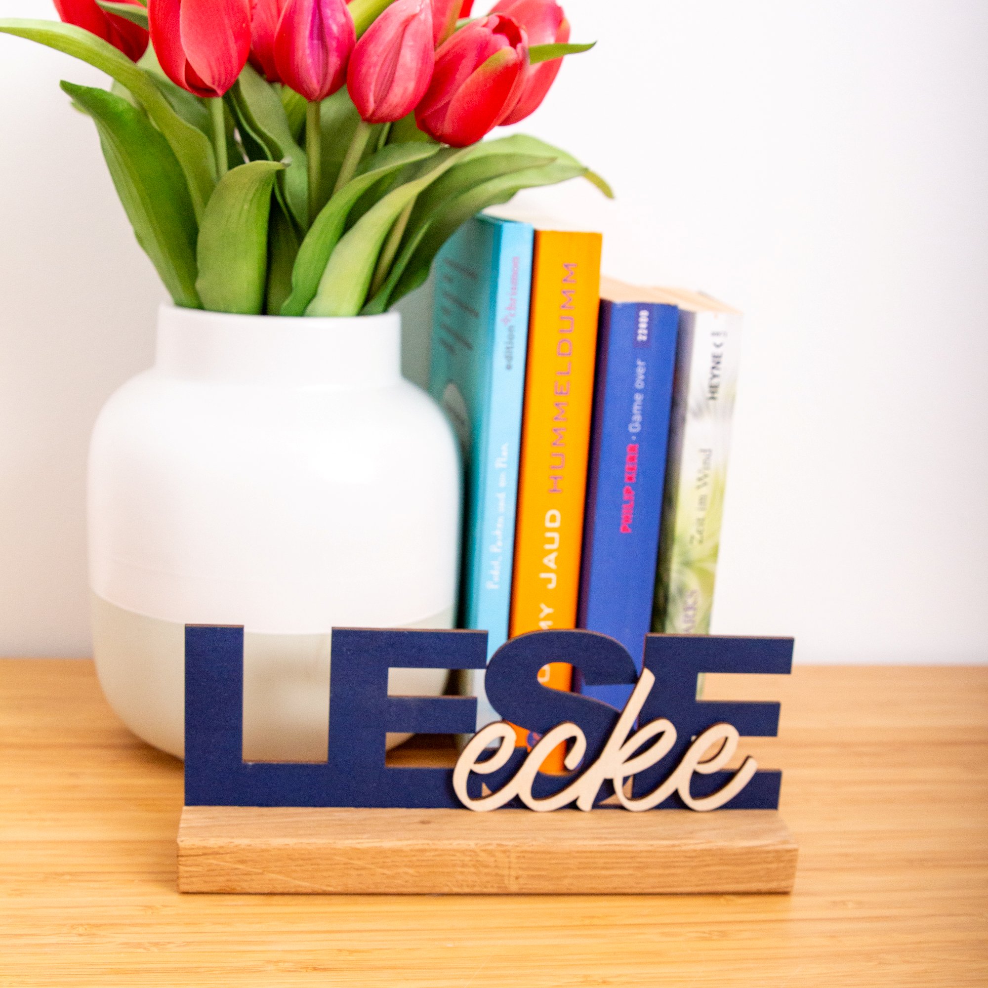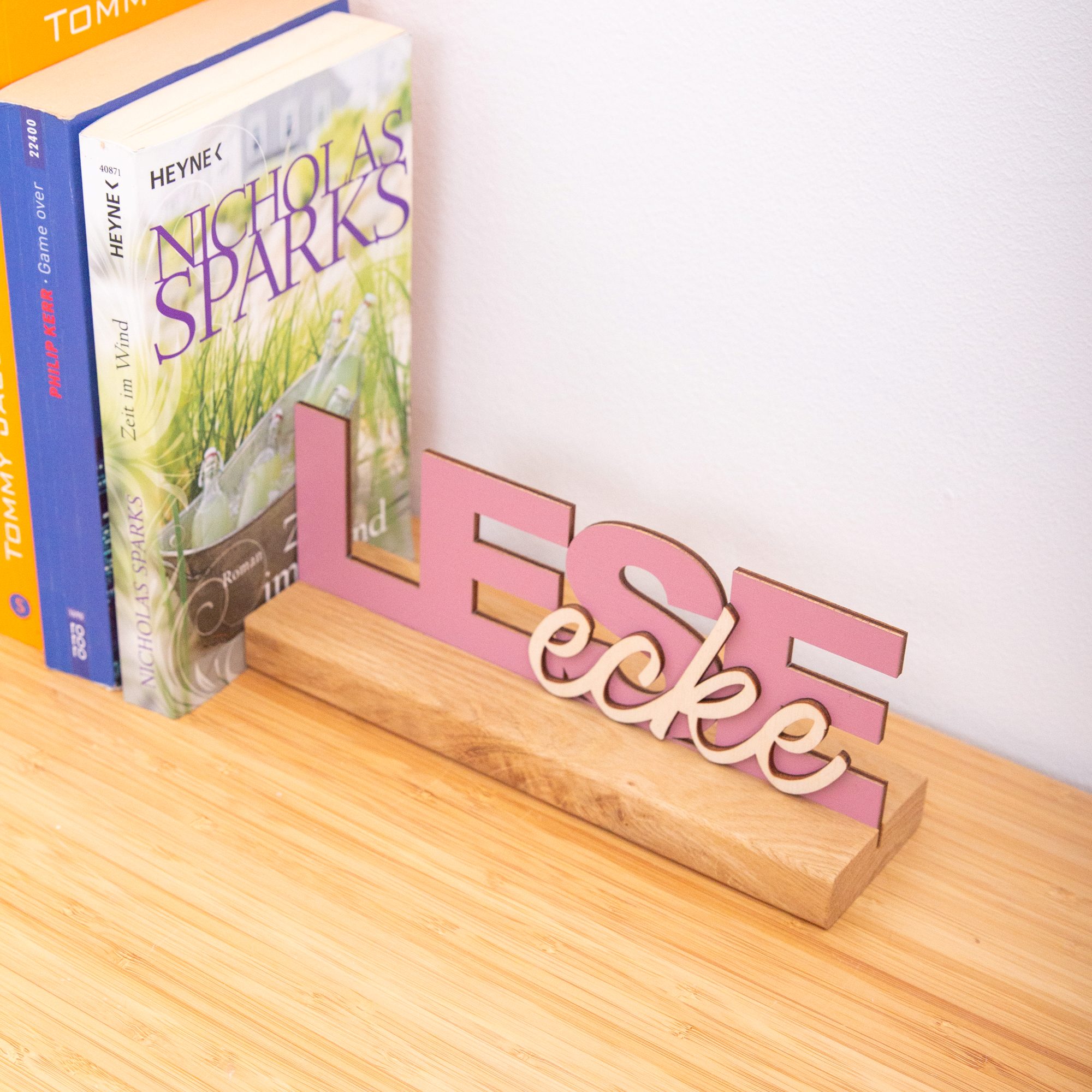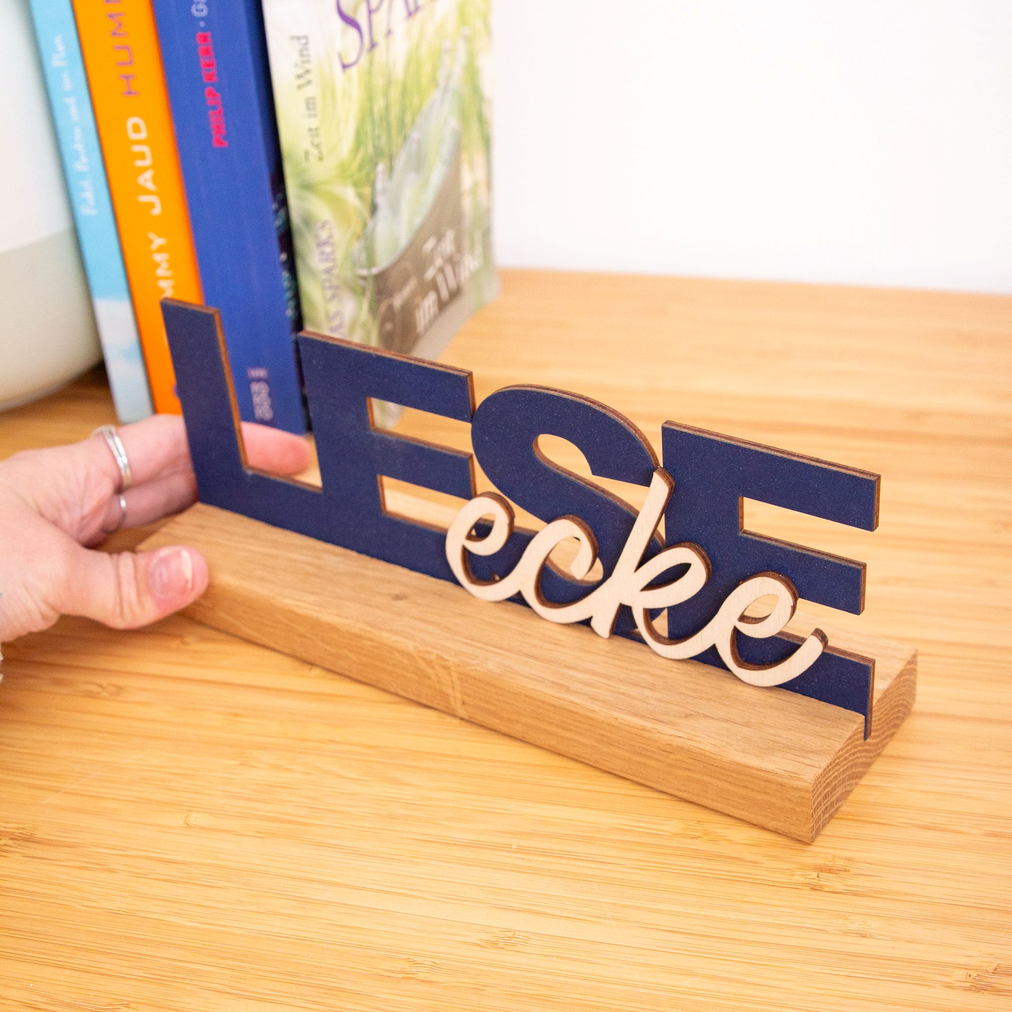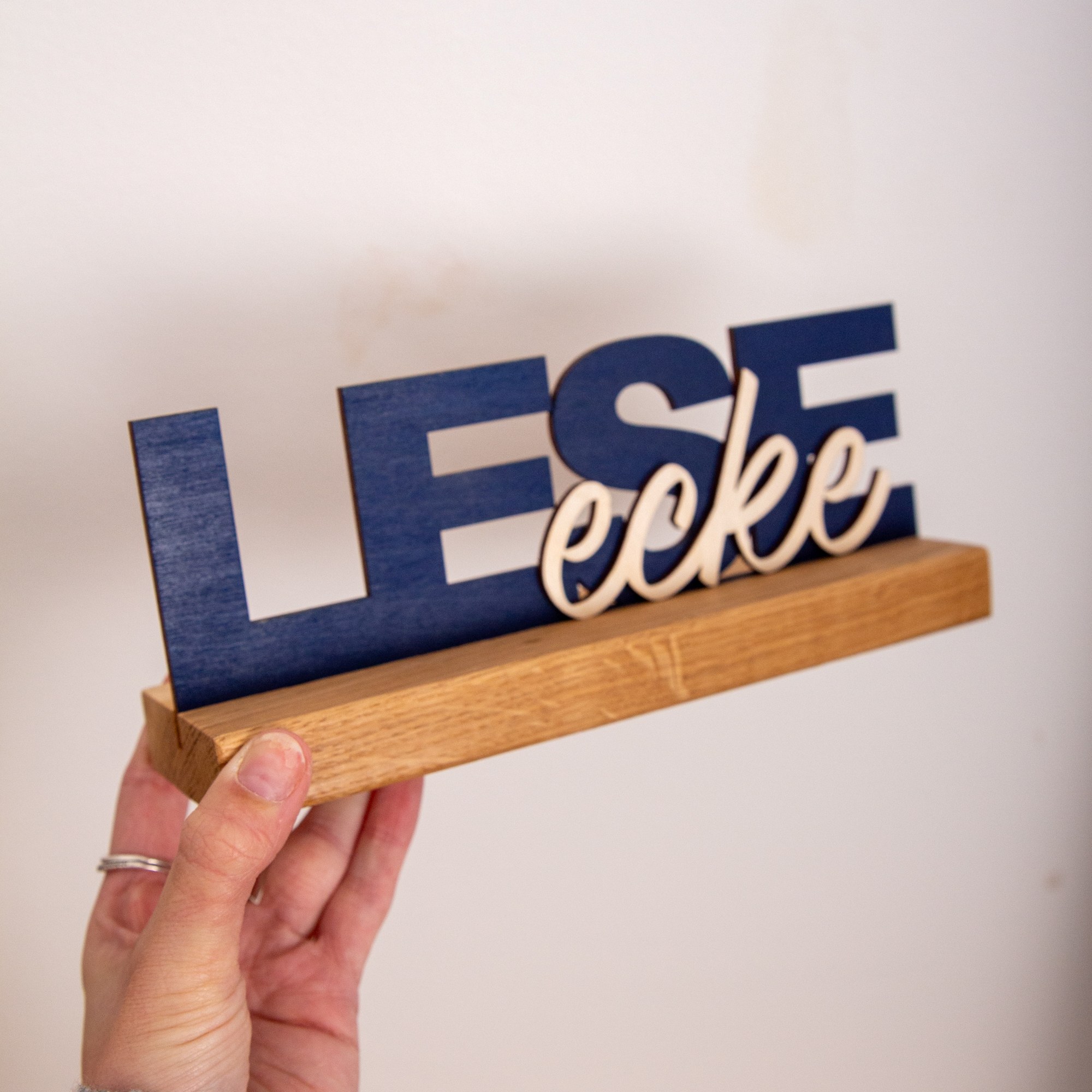 Deko-Schriftzug „Lese Ecke“ aus Holz | Modernes Regal-Zubehör & Geschenk für Buchliebhaber | Handgemacht in Leipzig