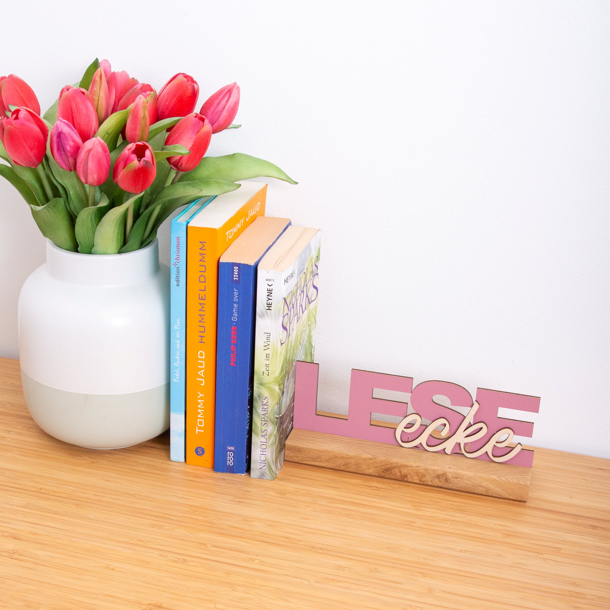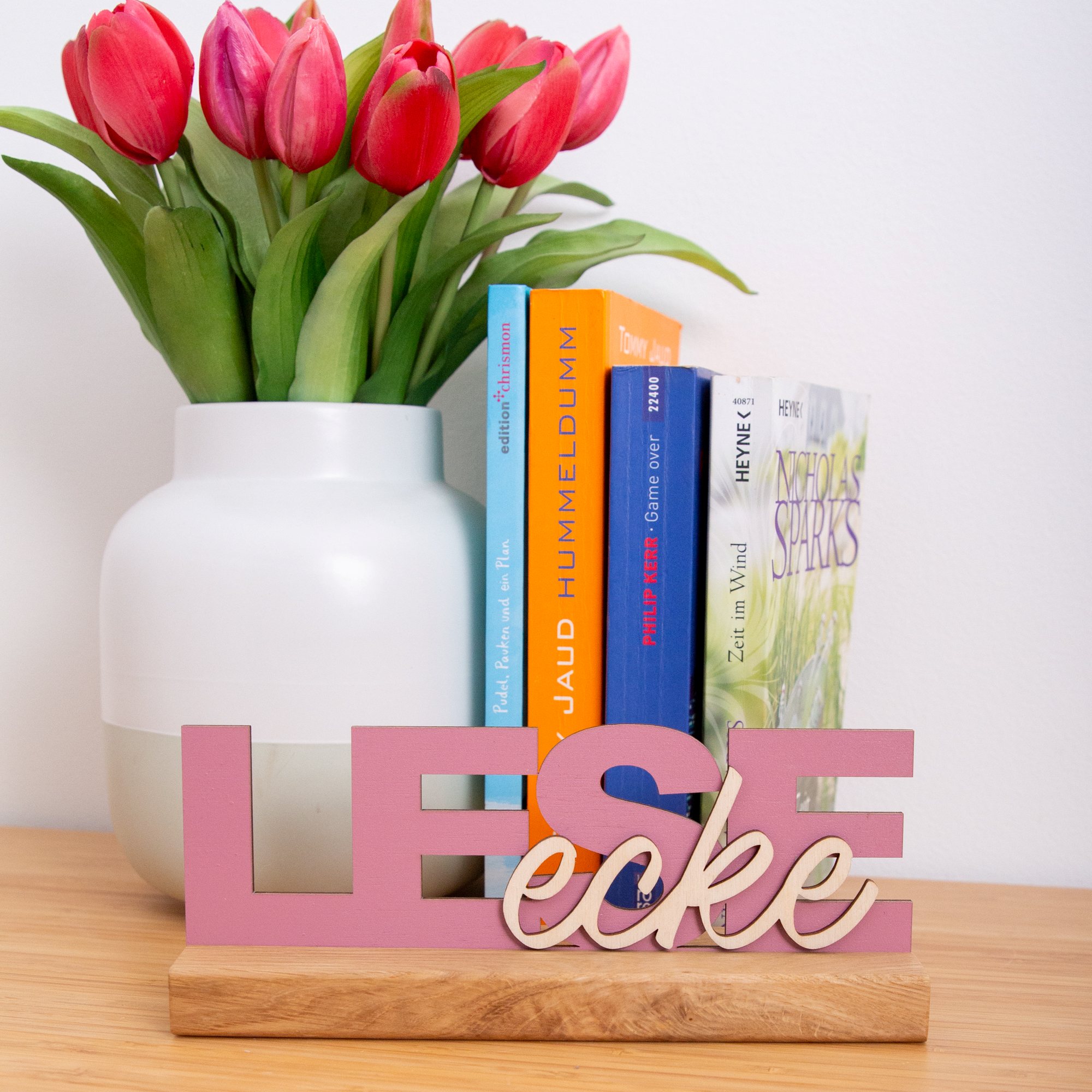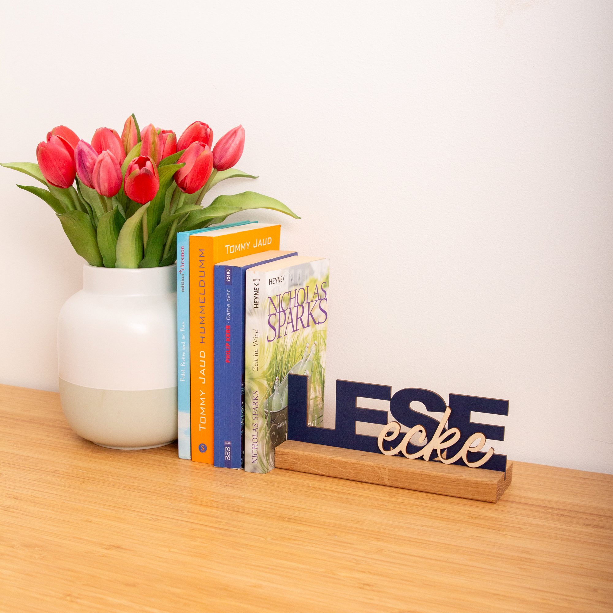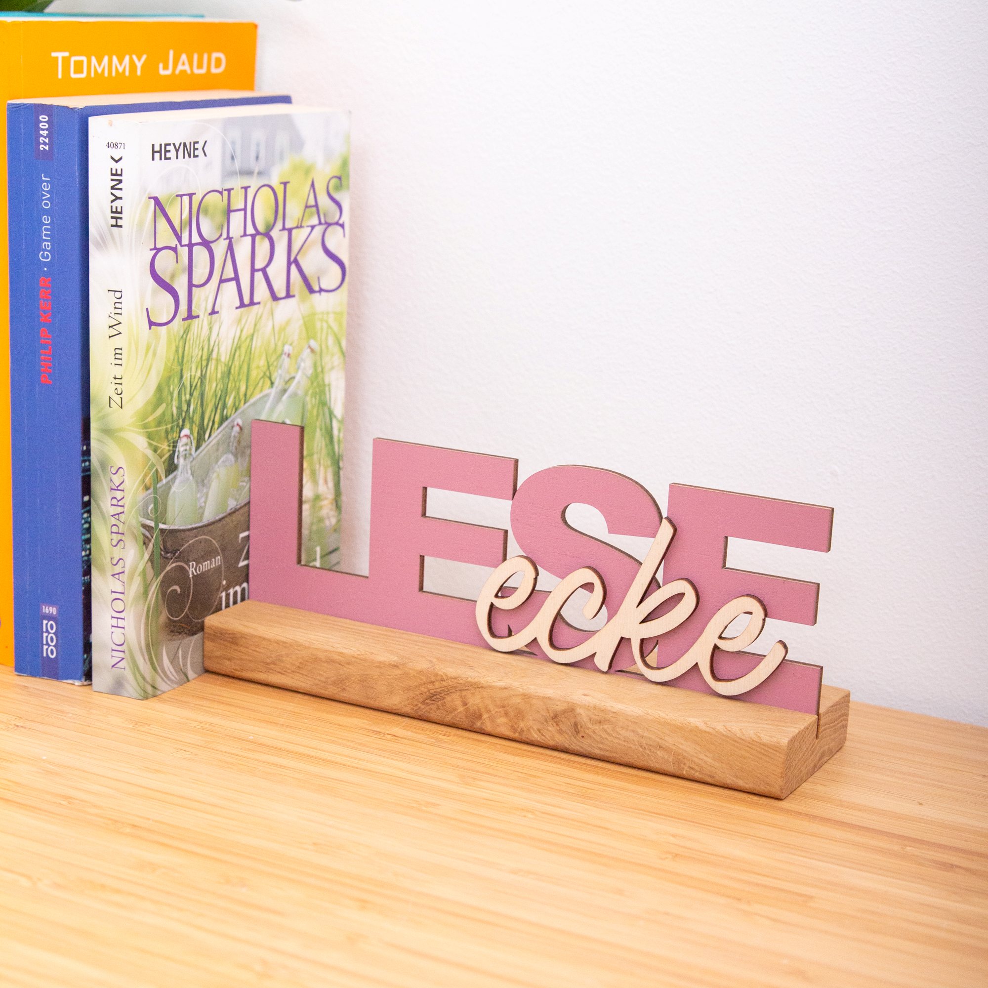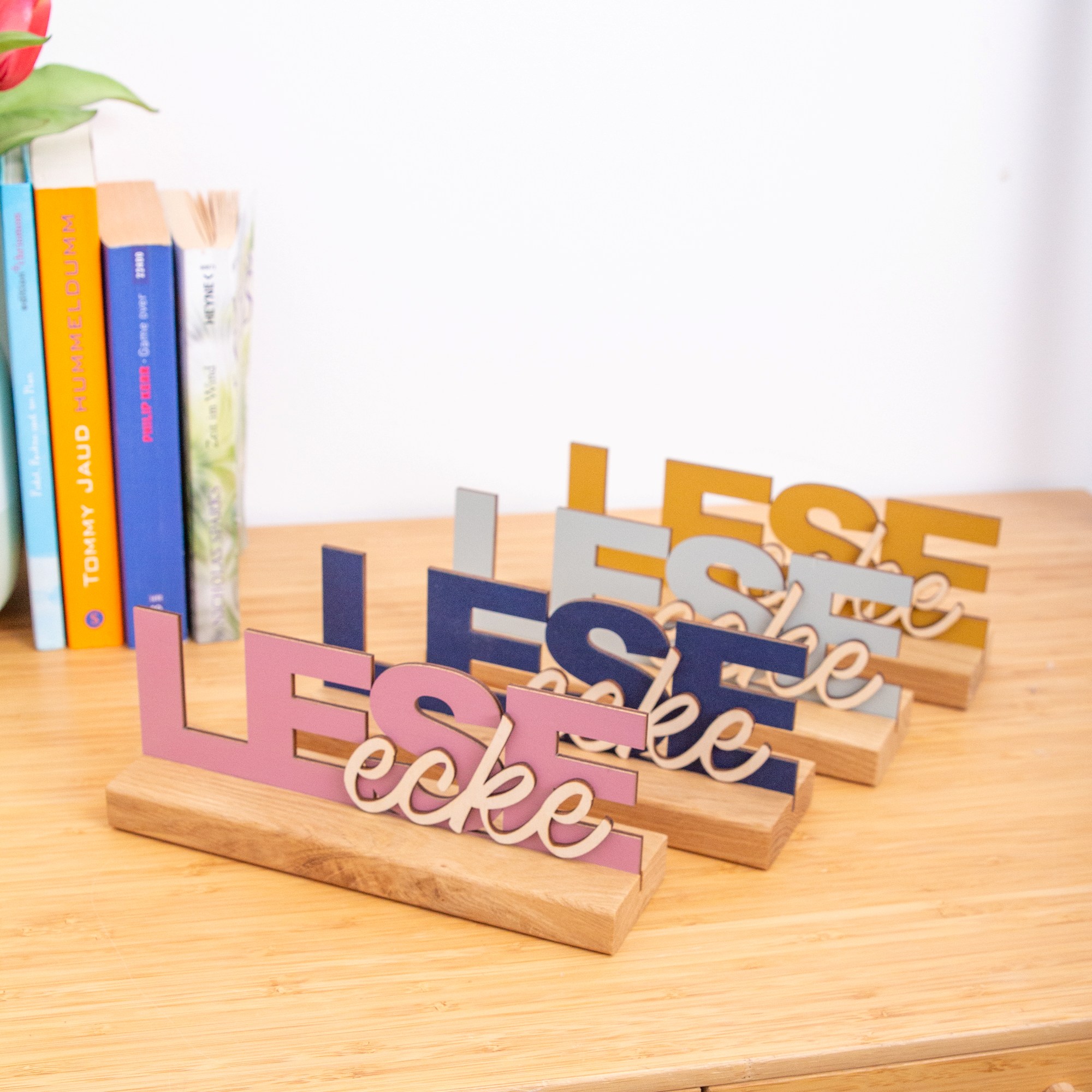 Deko-Schriftzug „Lese Ecke“ aus Holz | Modernes Regal-Zubehör & Geschenk für Buchliebhaber | Handgemacht in Leipzig