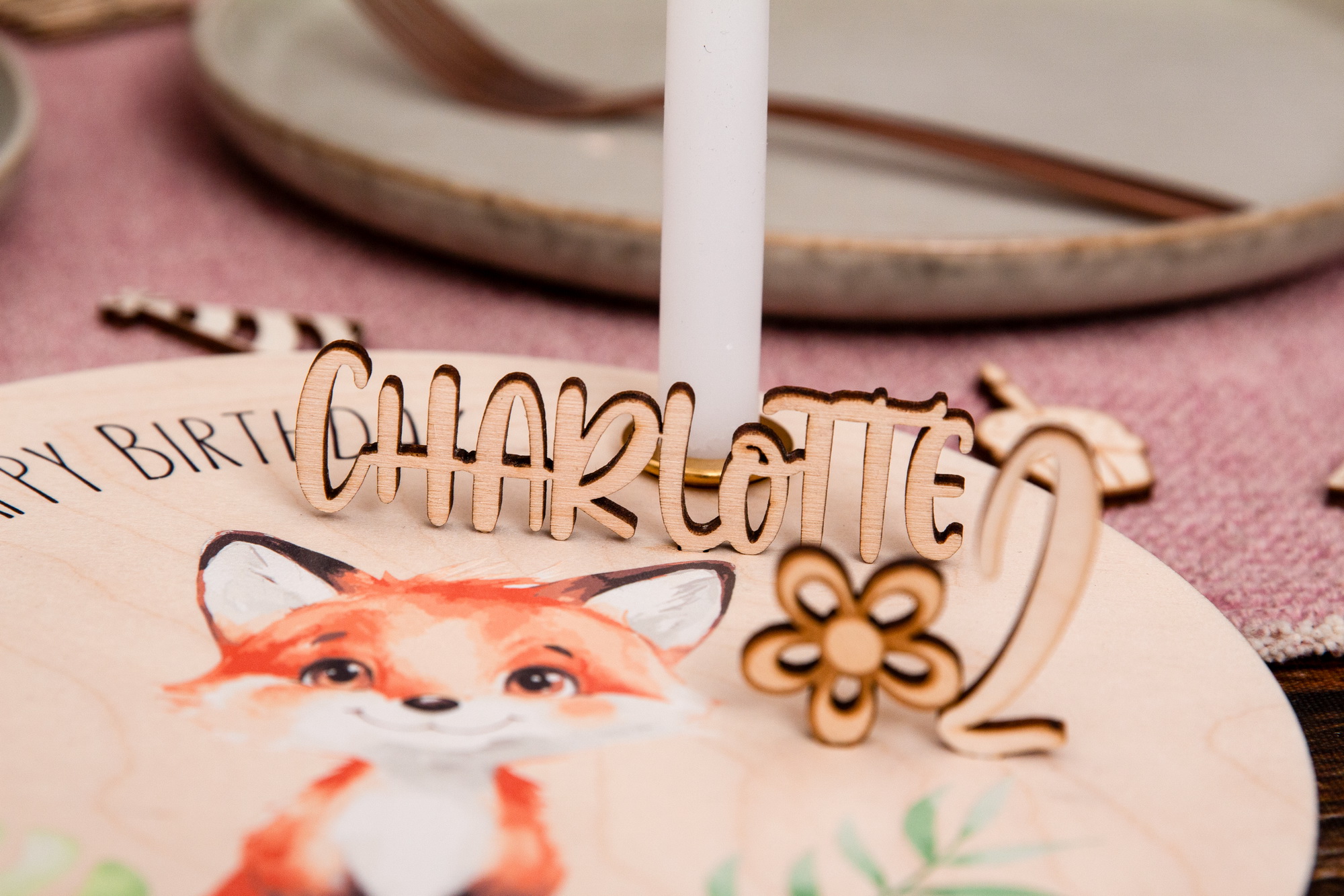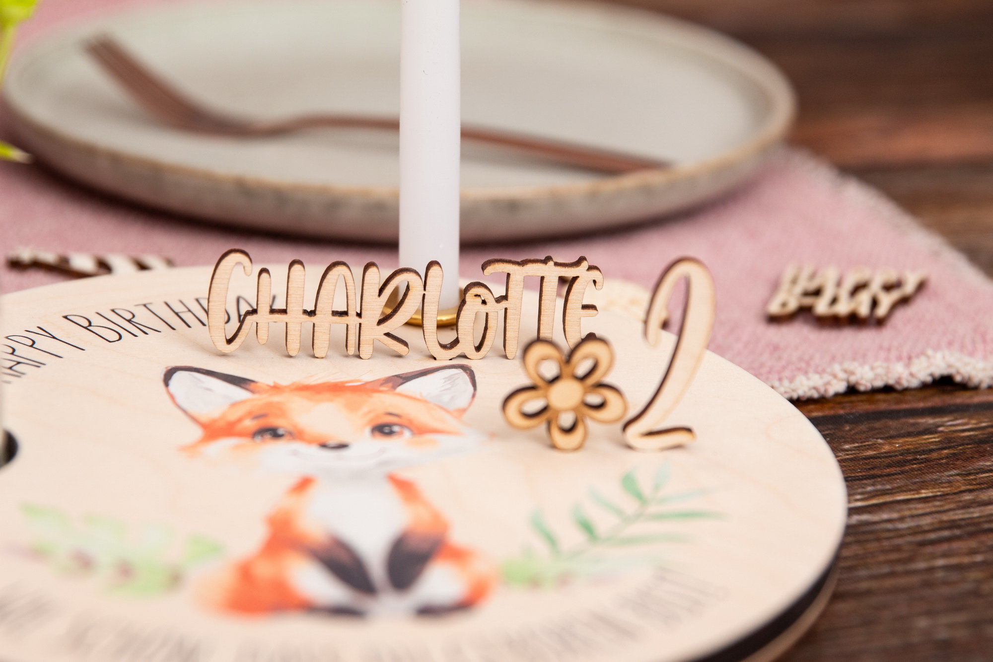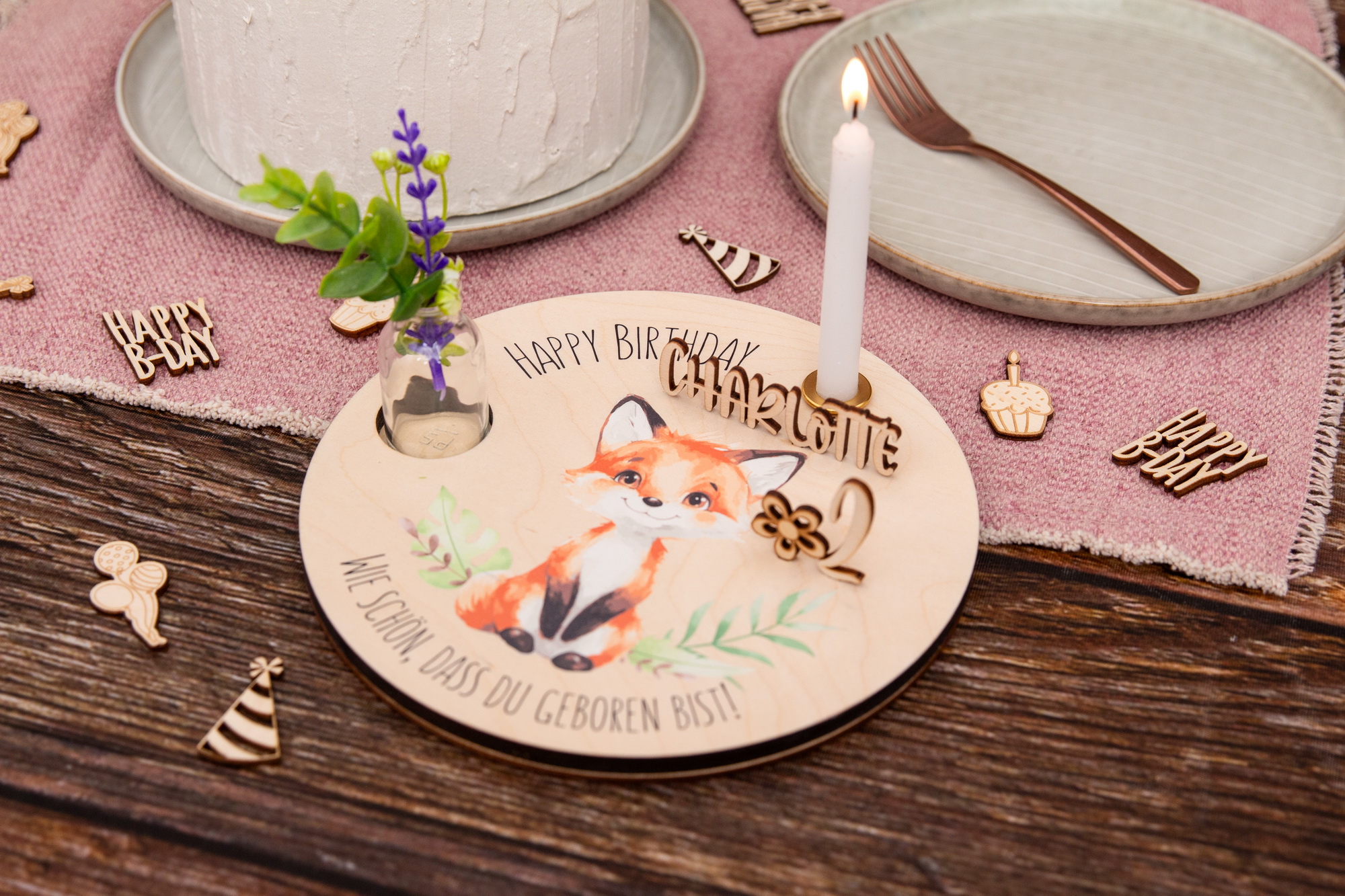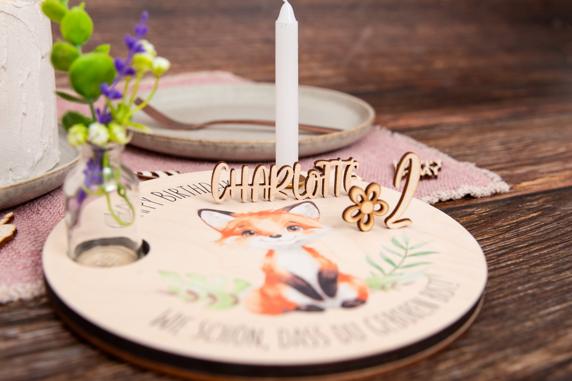 Geburtstagsteller Fuchs und Zahlenset – Geschenkidee zum Geburtstag / Nachhaltig und jährlich einsetzbar inkl. Zahlenset mit 0-9 (1 doppelt)