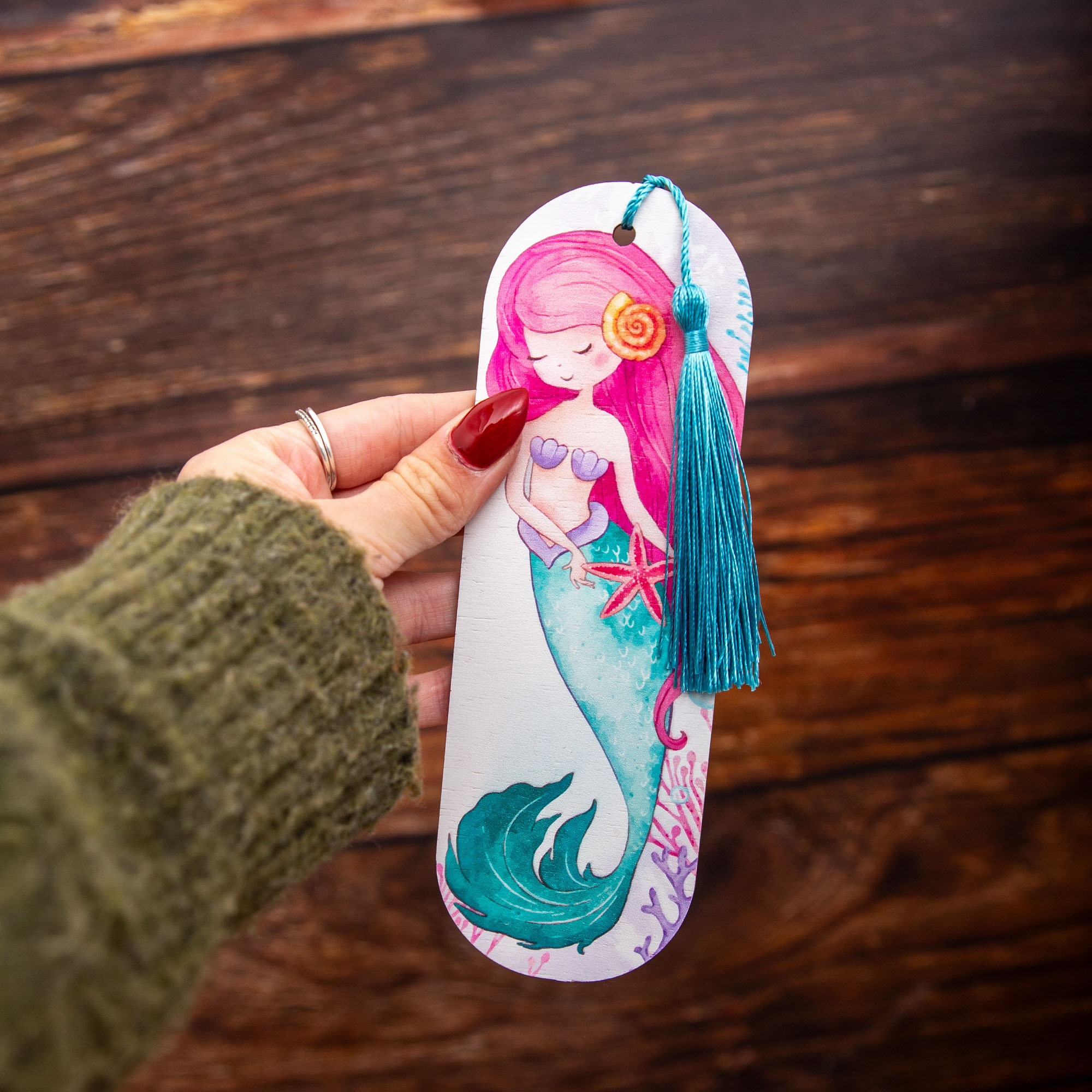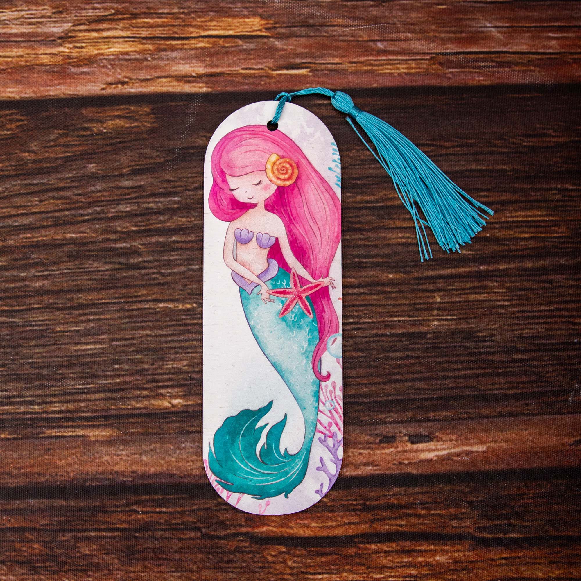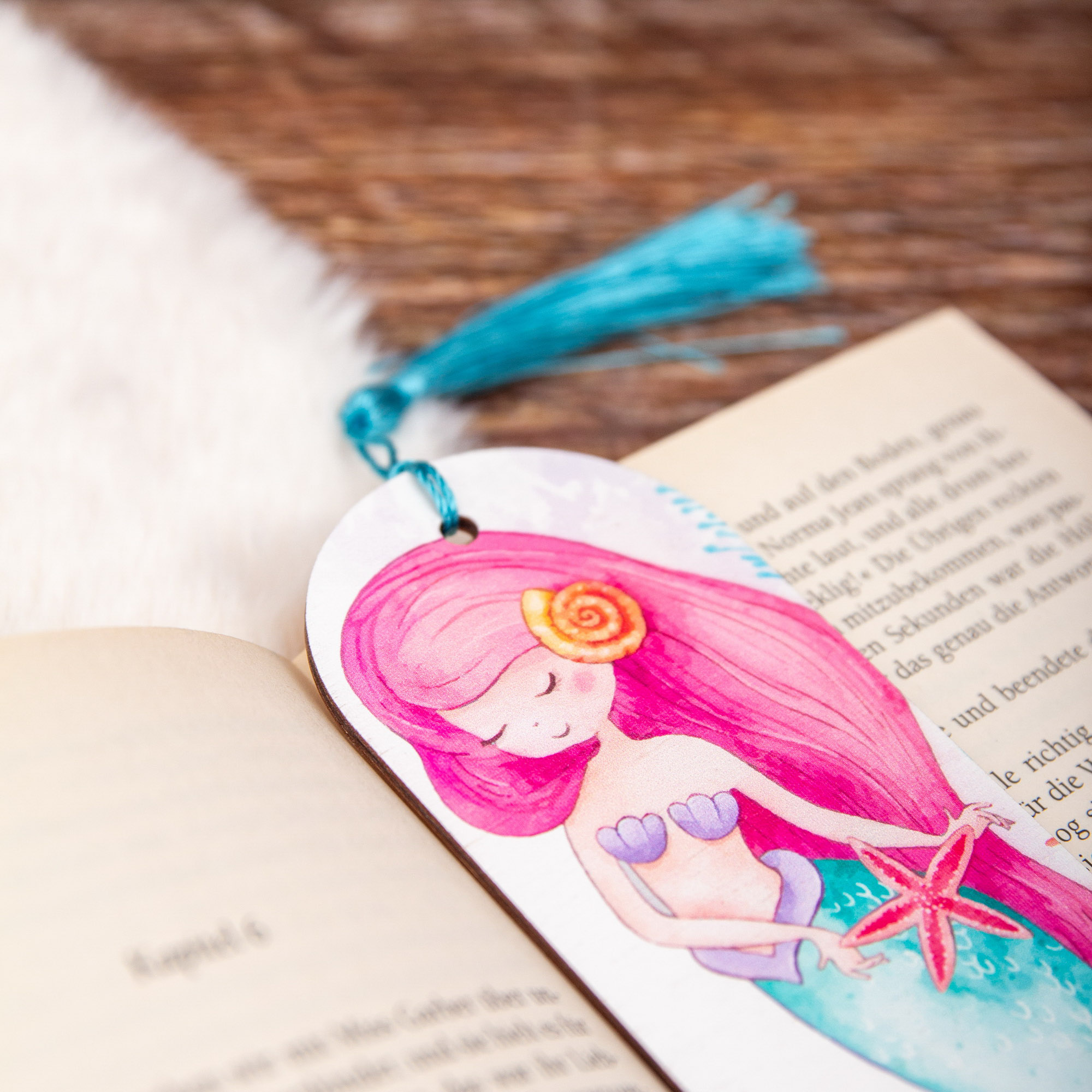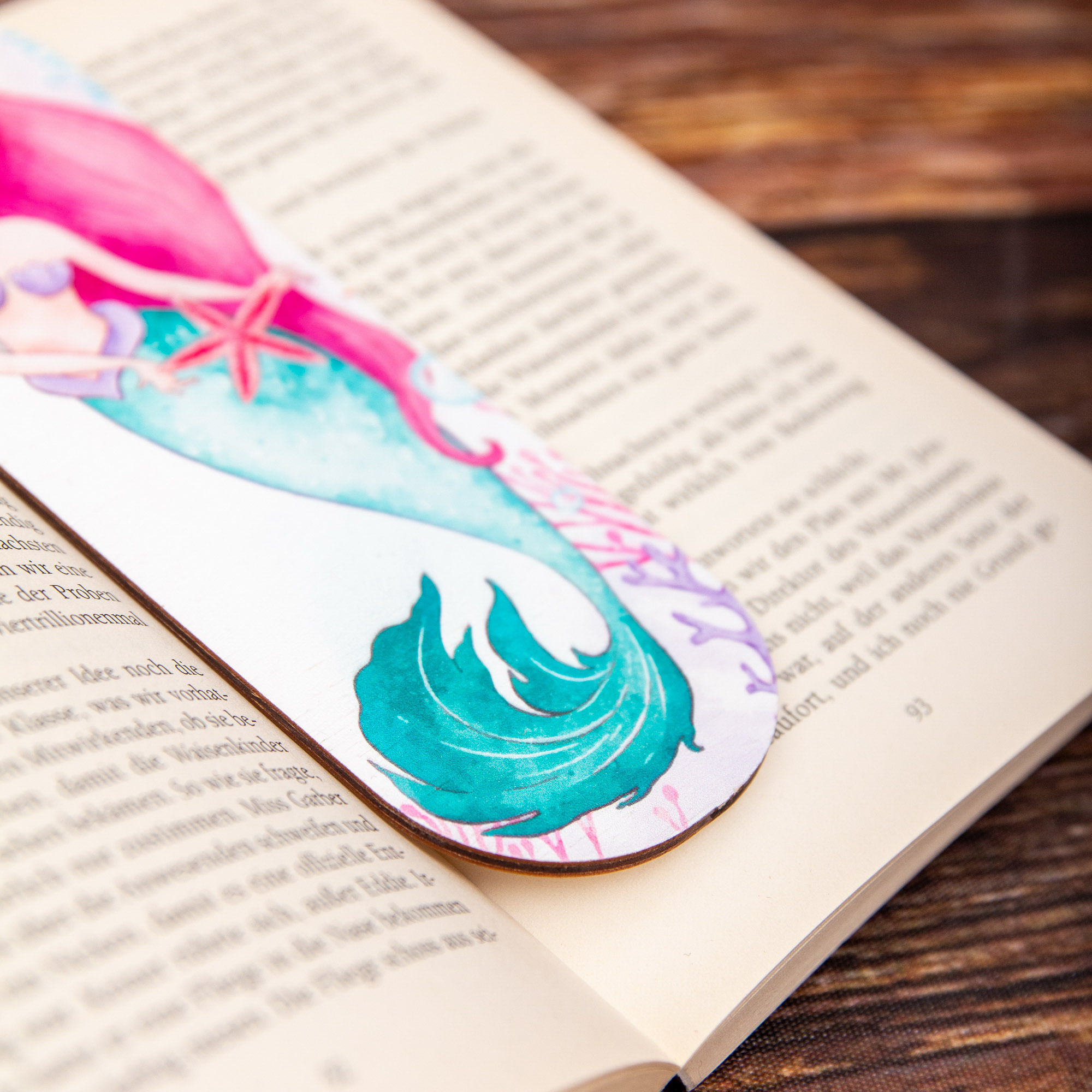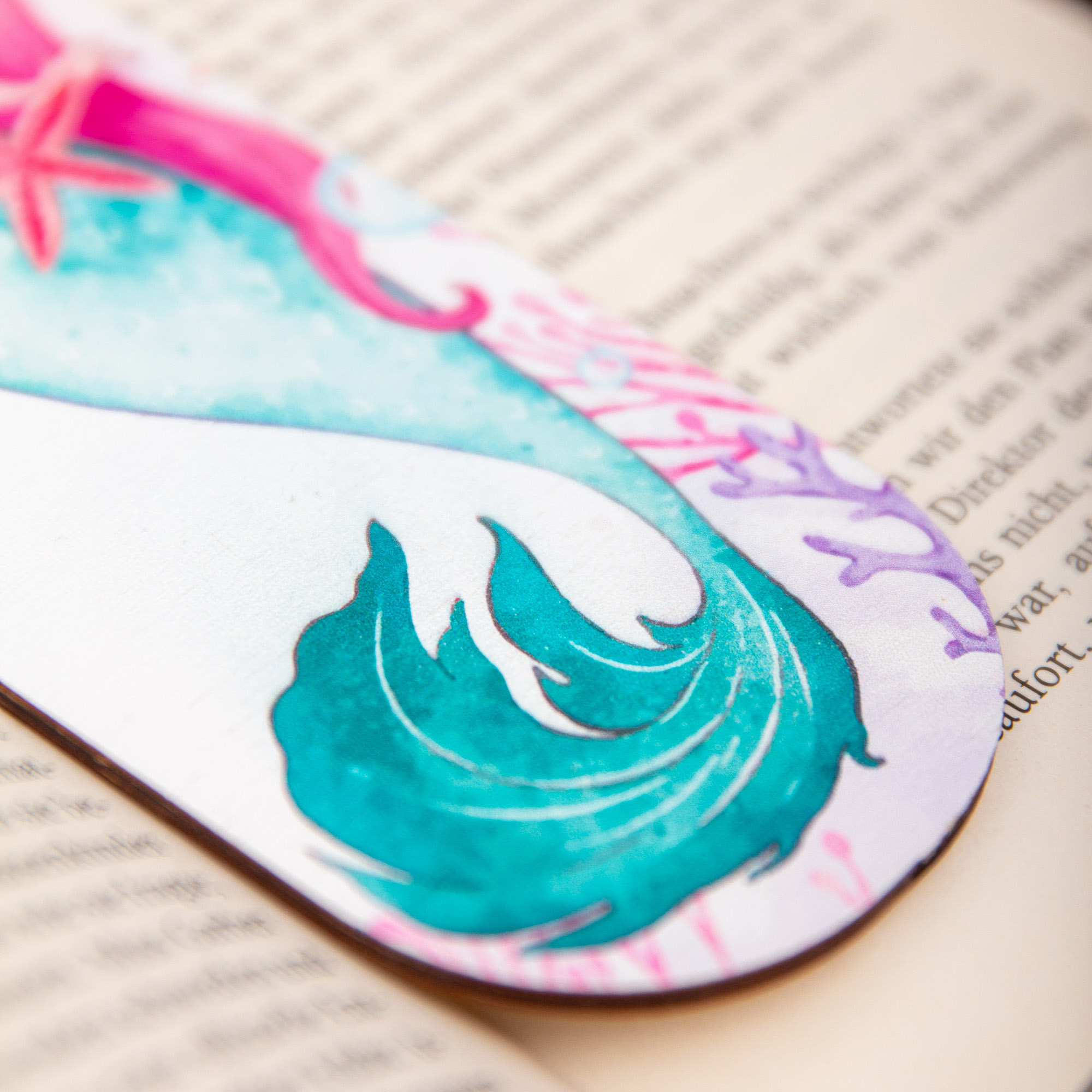 Lesezeichen Meerjungfrau, Lesezeichen aus Holz mit hochwertigem UV Druck – Handgemacht in Leipzig