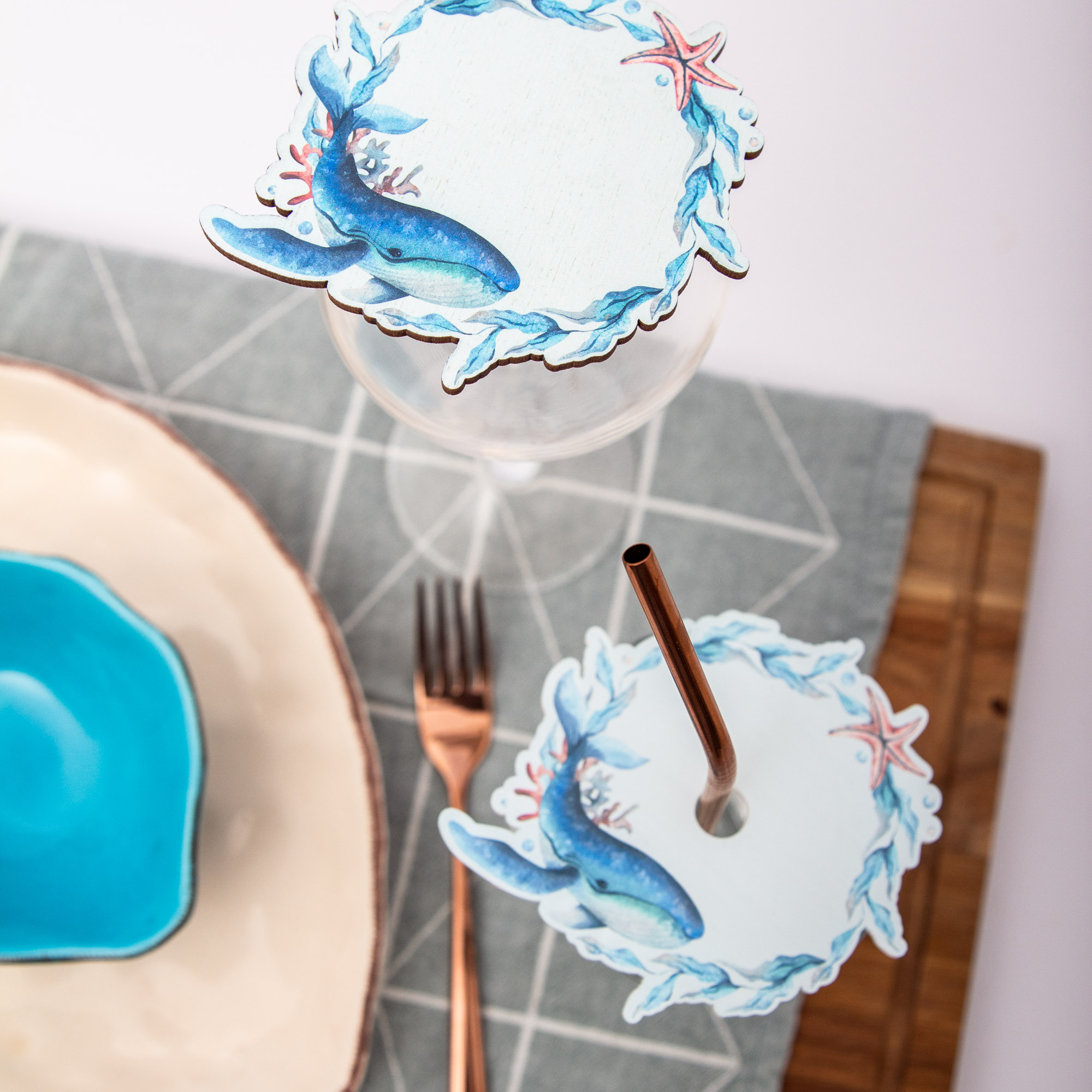 Edles Meeres-Design: Der Wal als Symbol für Stärke und Gelassenheit verleiht deinem Tisch eine ganz besondere, maritime Note.
