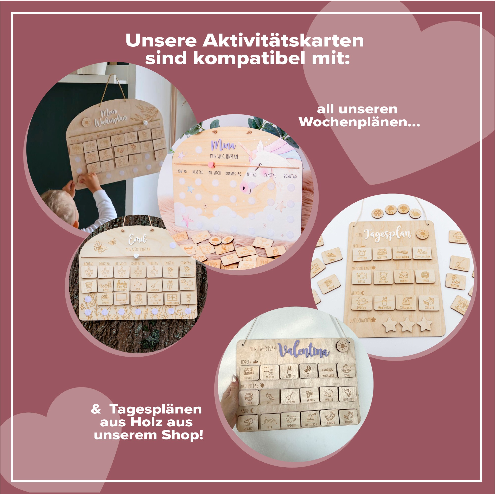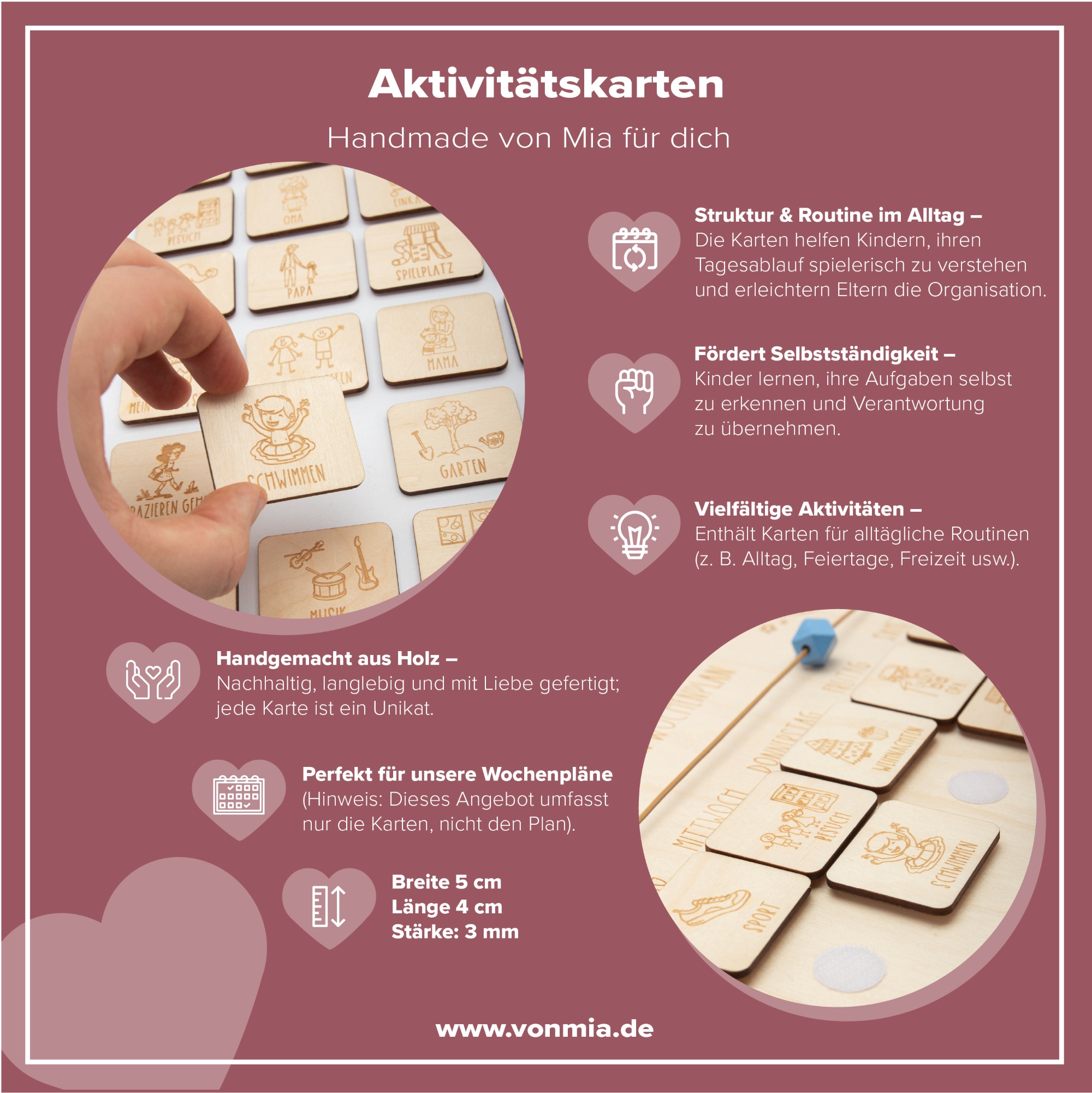 Holz-Aktivitätskarten für Kinder | Routinehelfer & Wochenplan-Ergänzung | Handgemacht in Leipzig