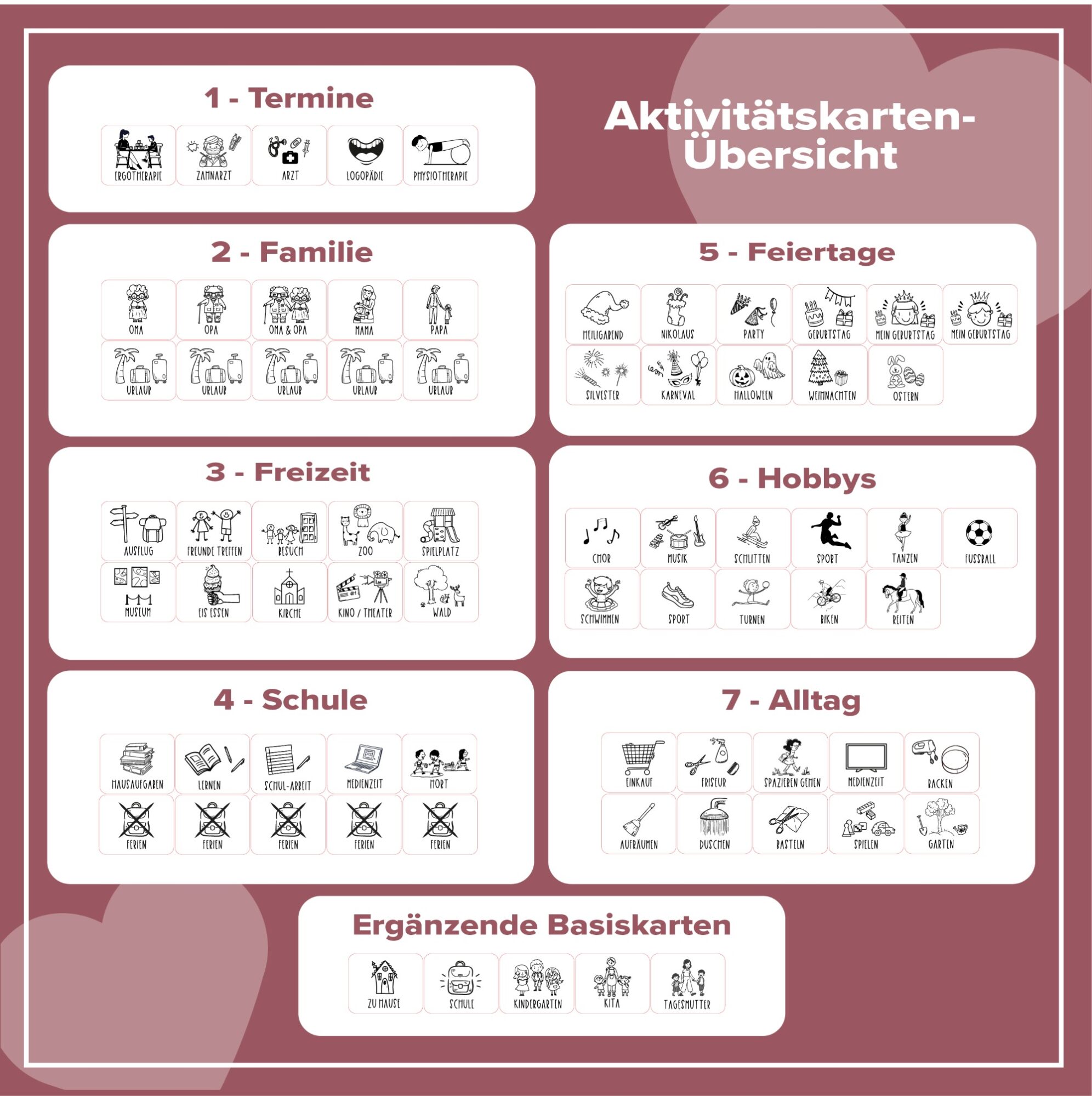 Achtung: Nur Karten! Bei diesem Artikel kaufst du die einzelnen Aktivitätskarten aus Holz. Ein Basis-Planer (Tafel, Board etc.) ist NICHT enthalten.