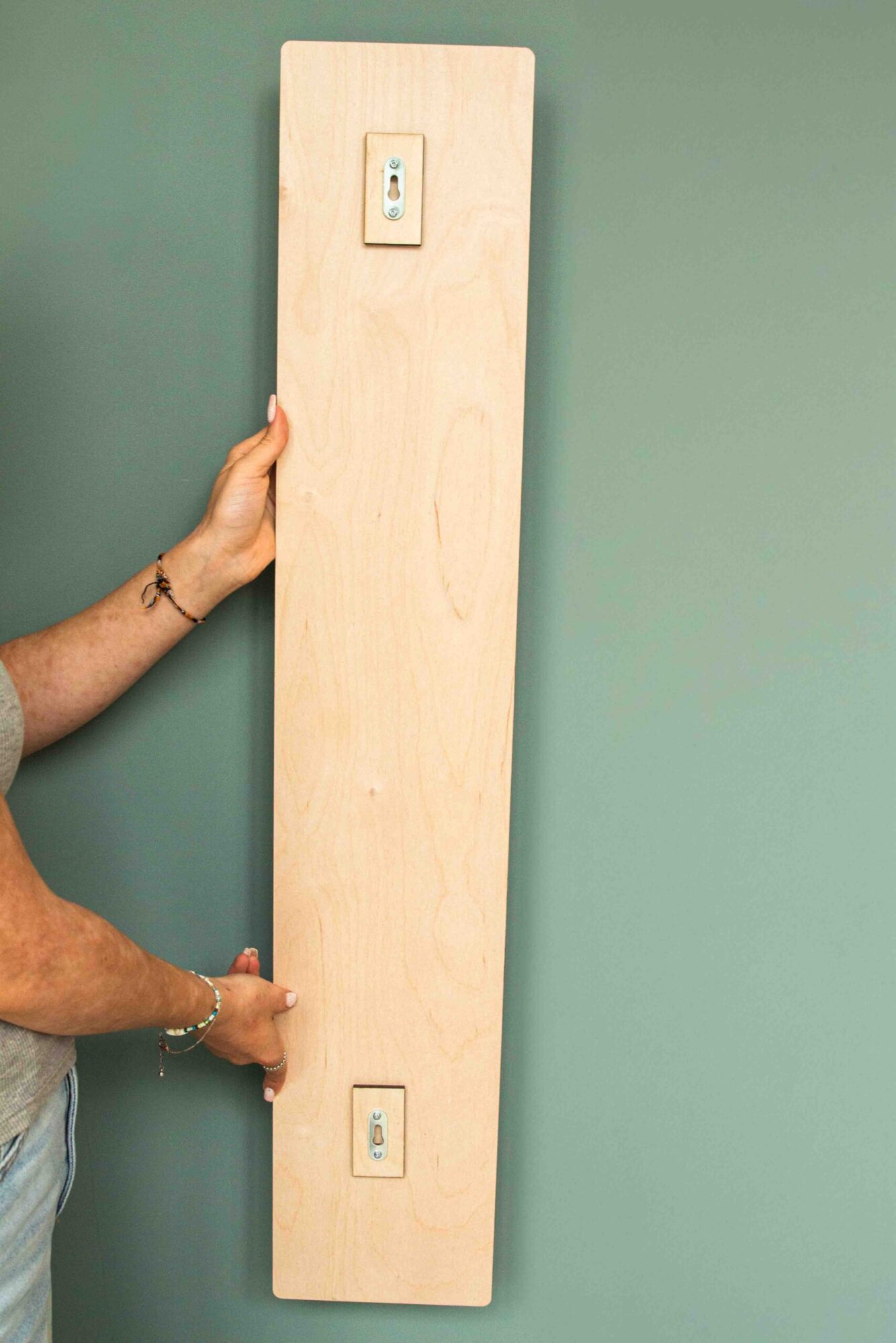 Sie hat 2 Halter auf der Rückseite um sie an der Wand zu verankern.