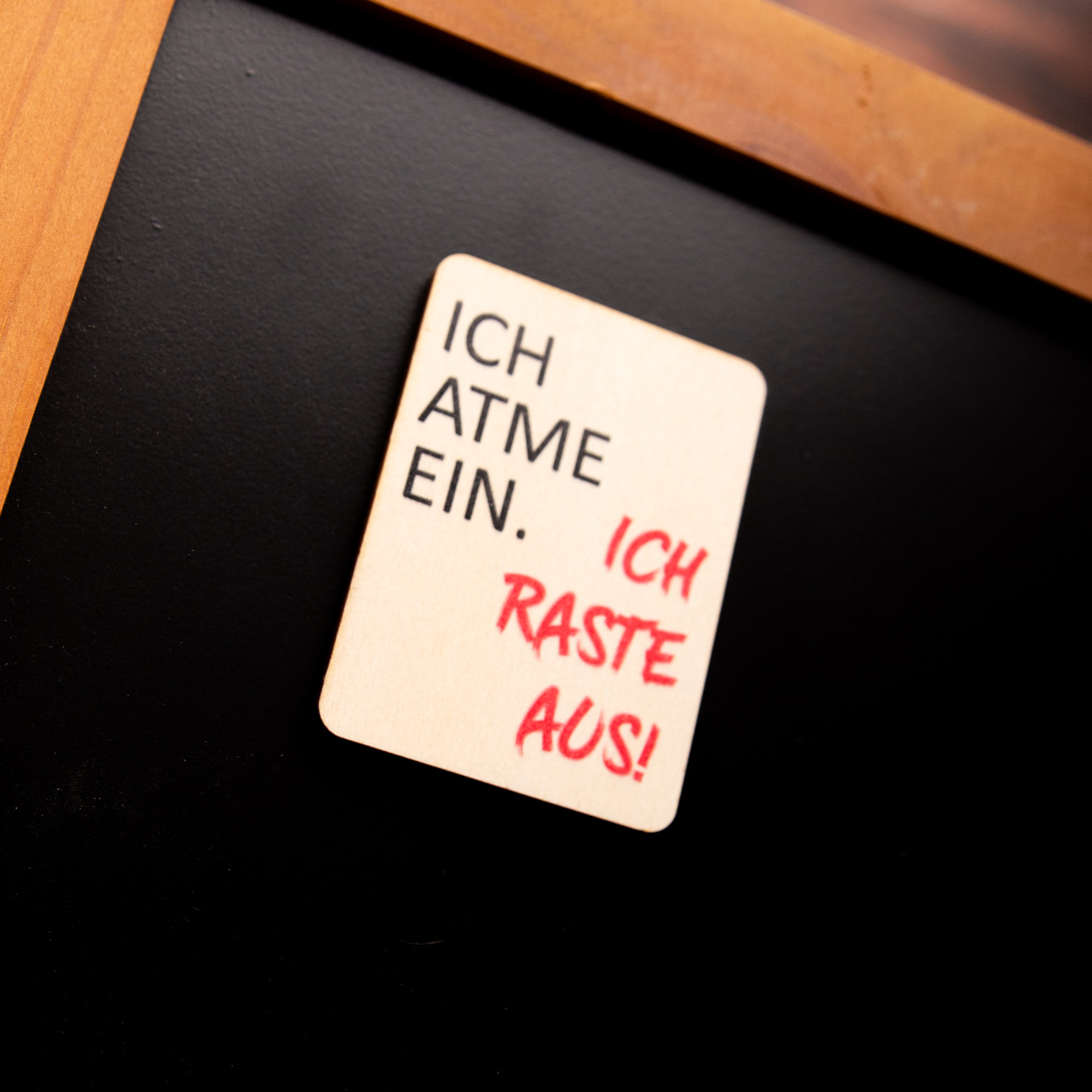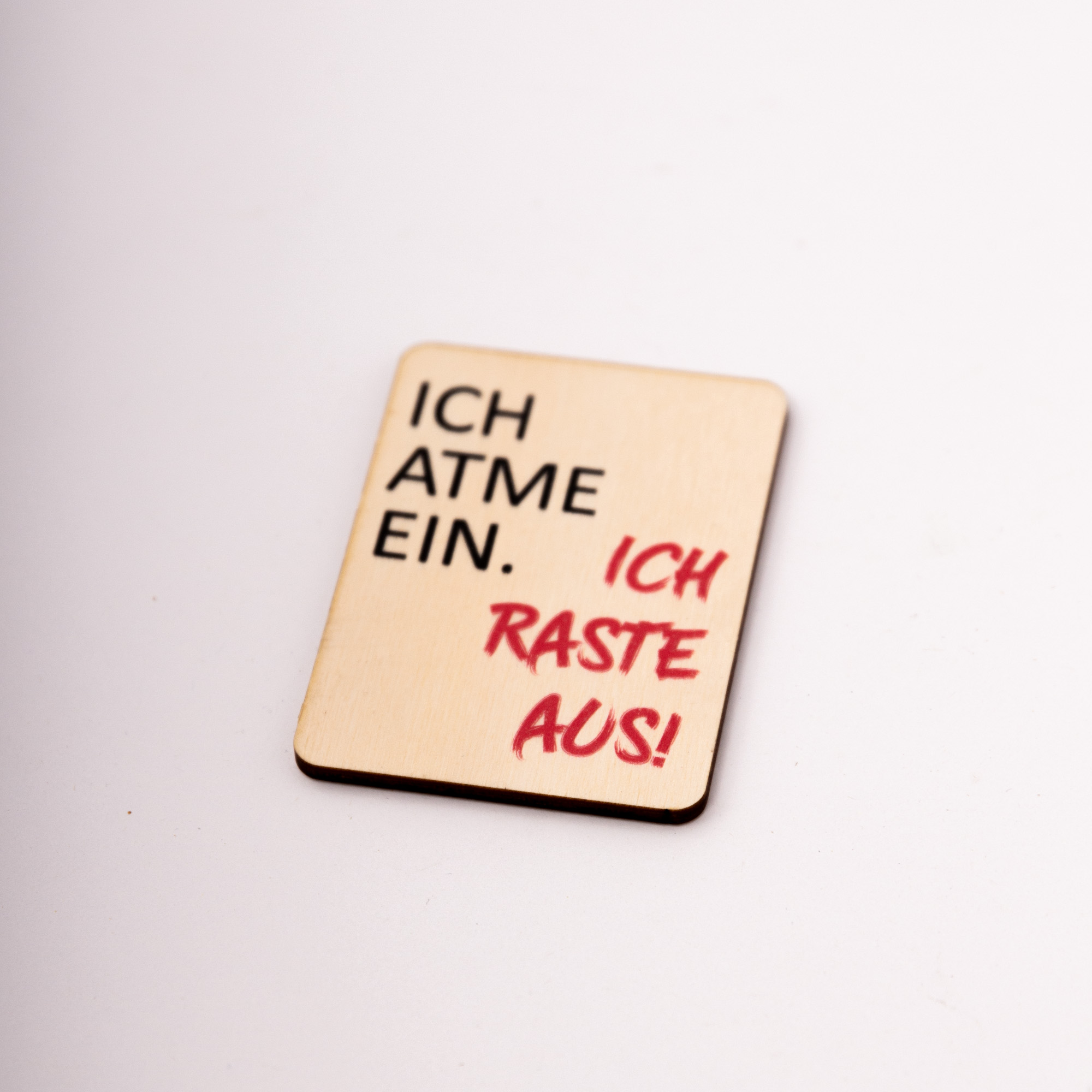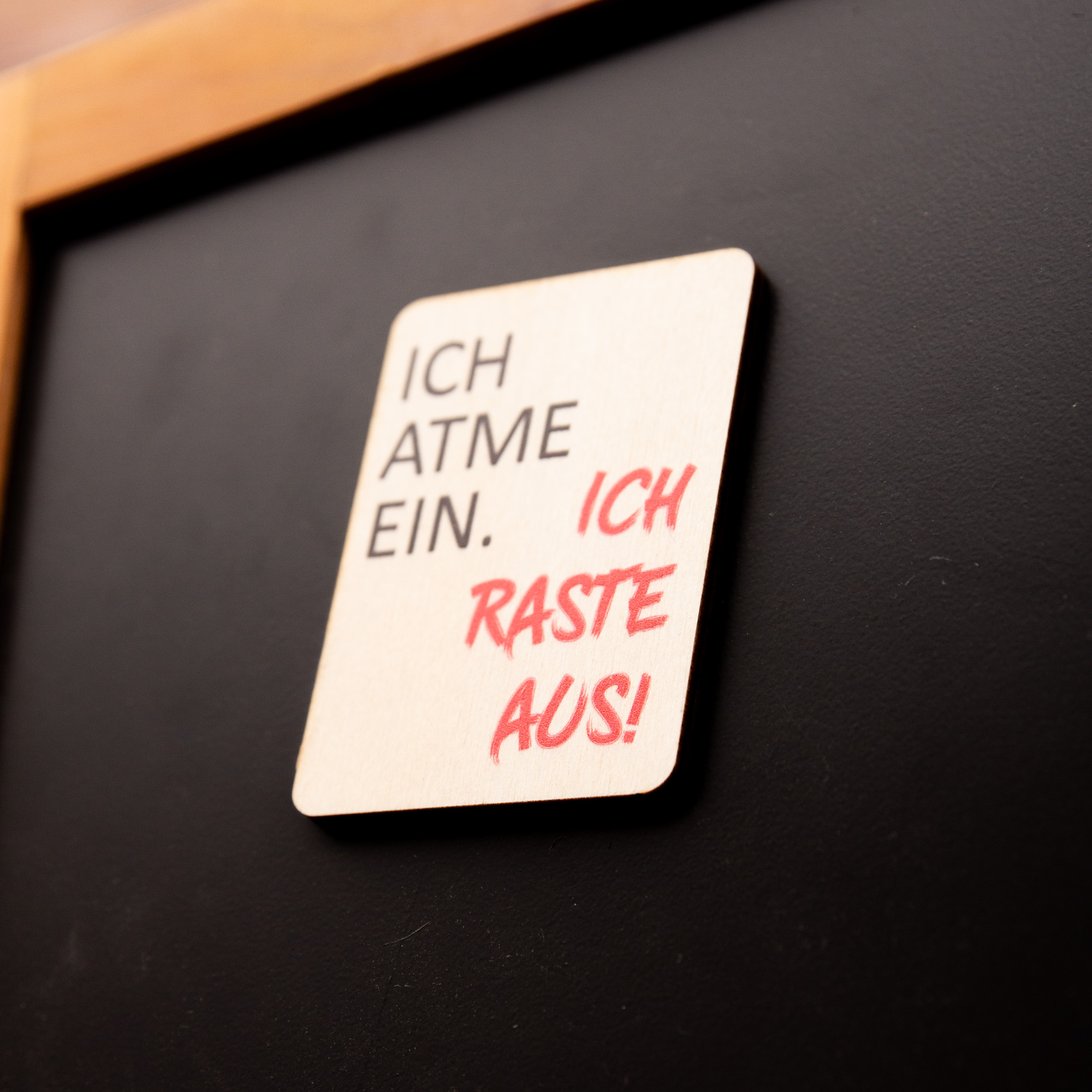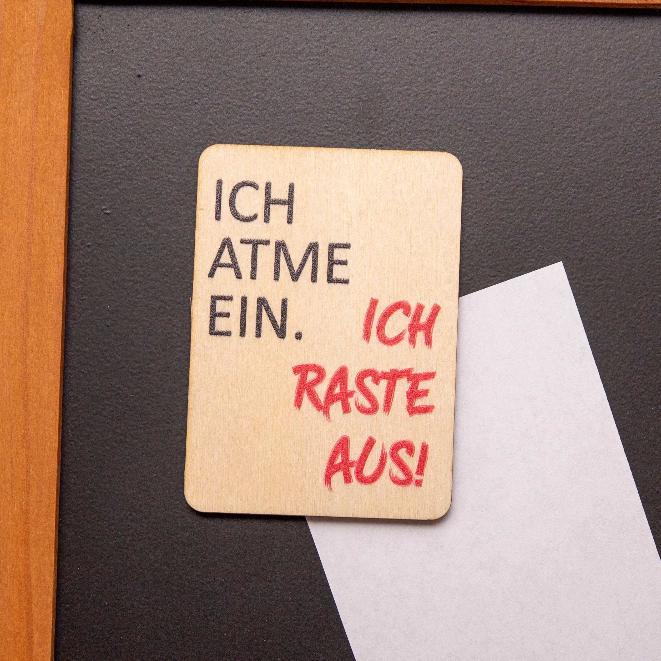Holzmagnet „Ich atme ein ich raste aus“ – Witziger Kühlschrankmagnet Spruch – Geschenk für Kollegen & Freunde – Made in Leipzig