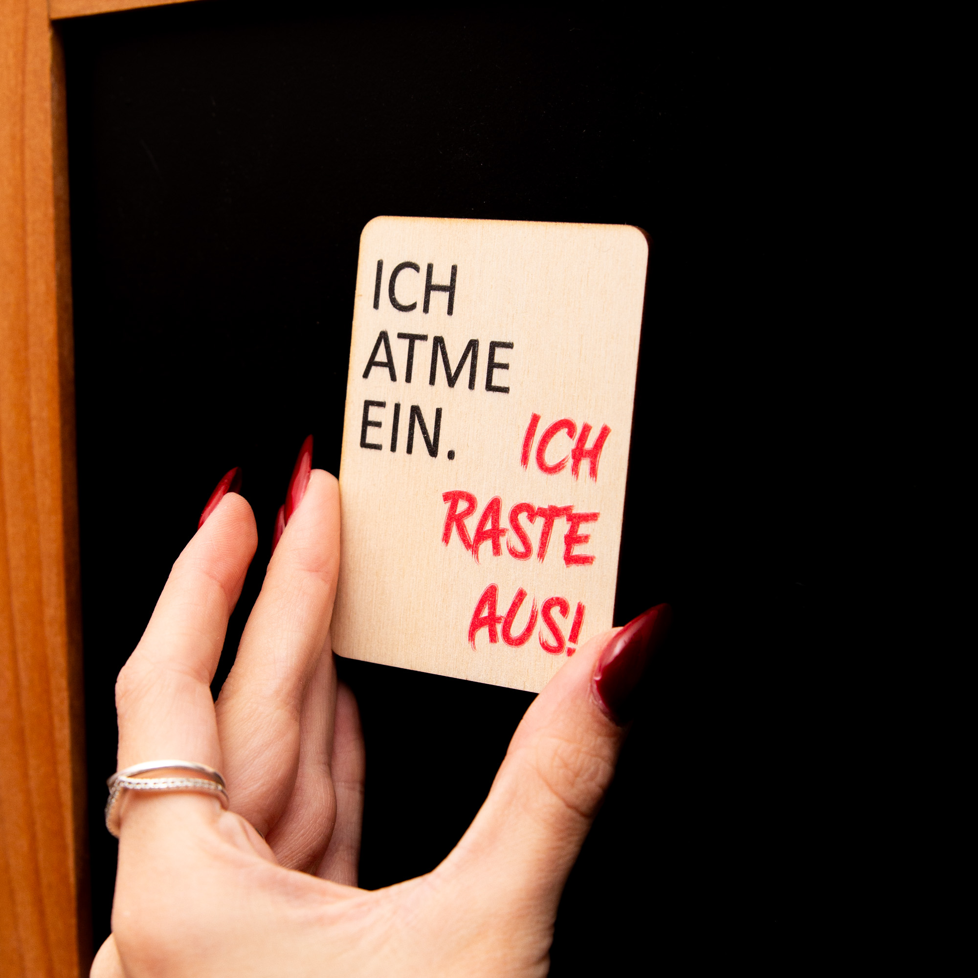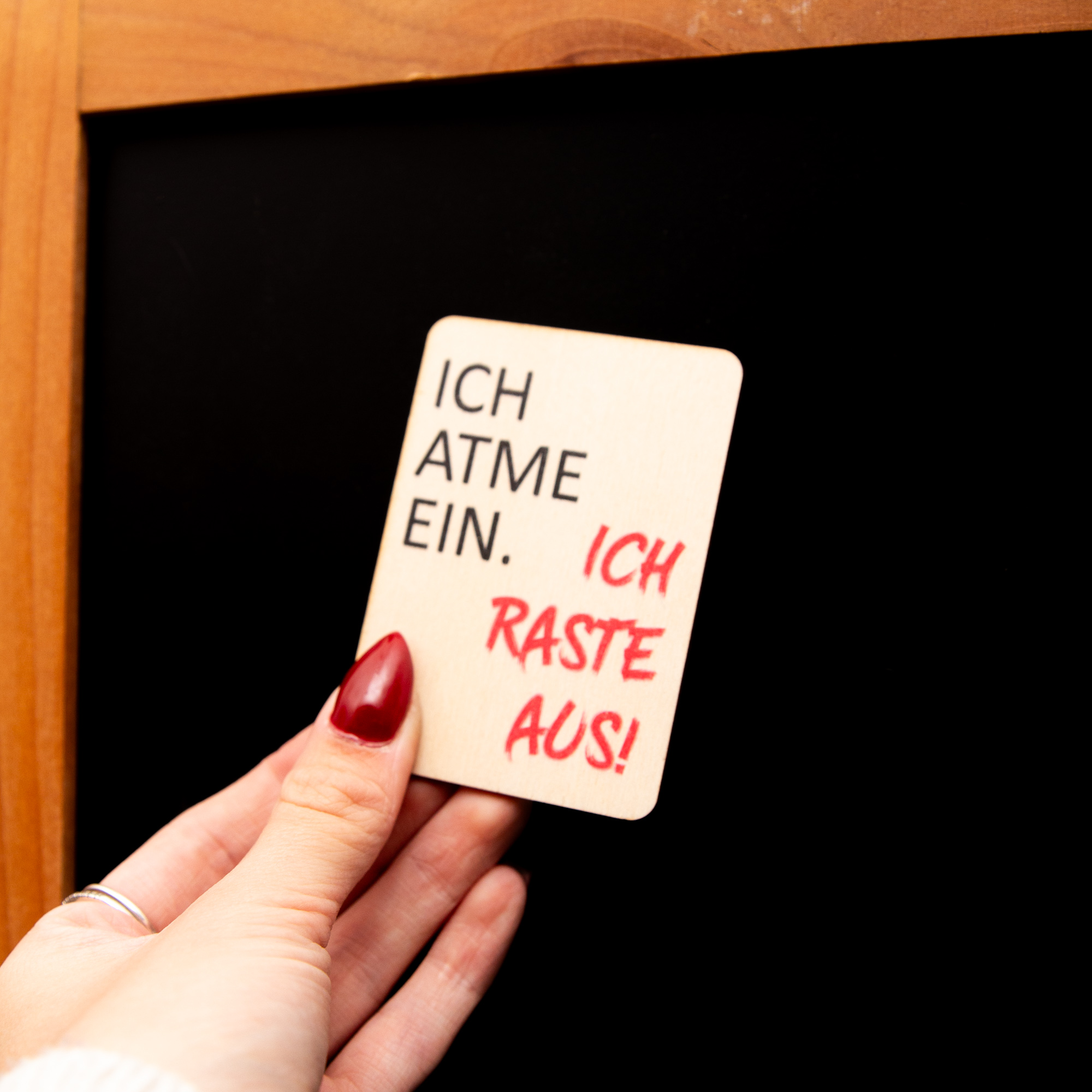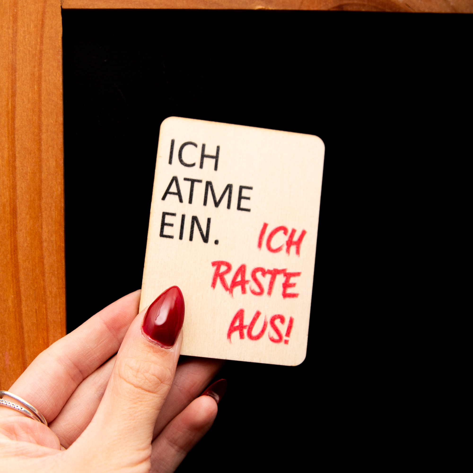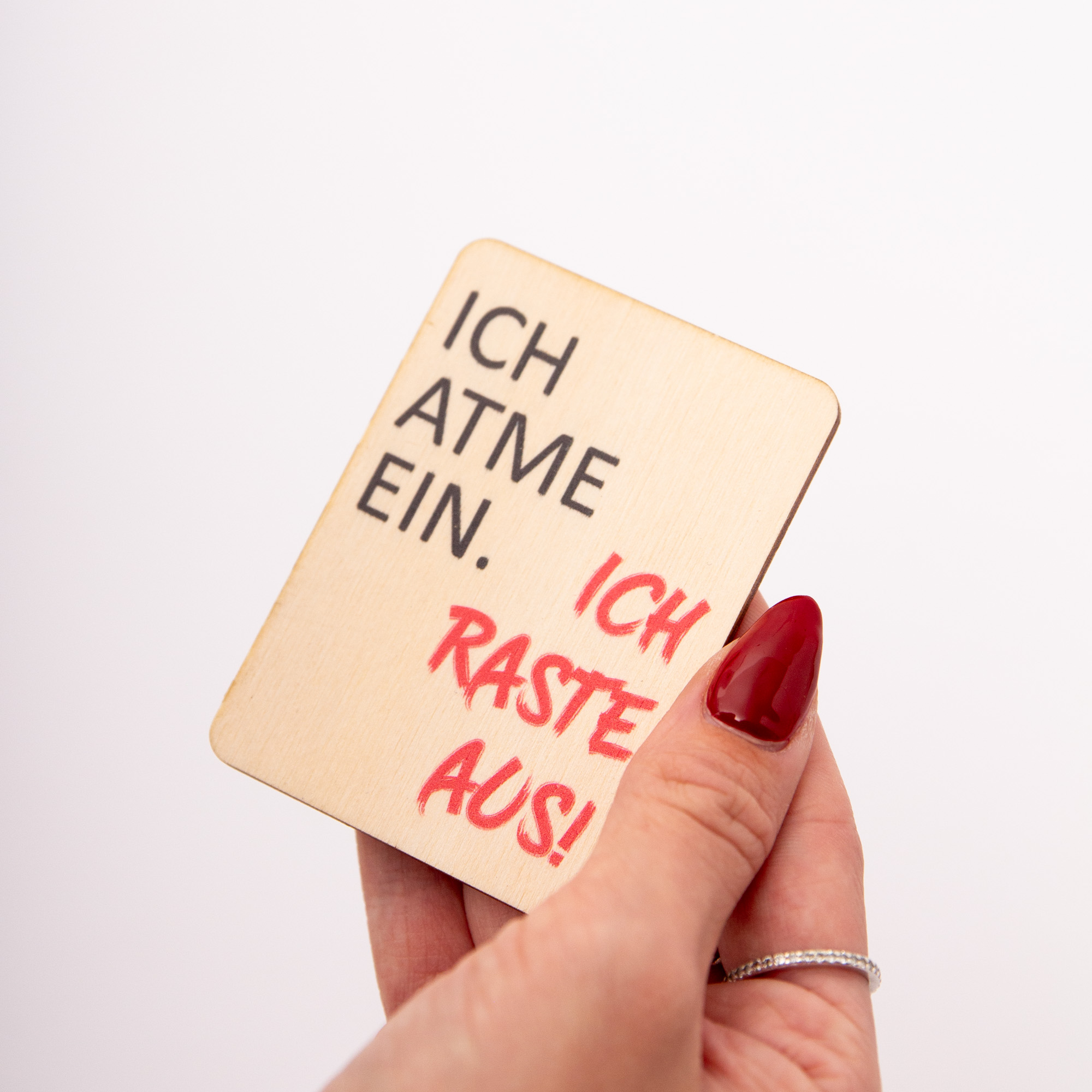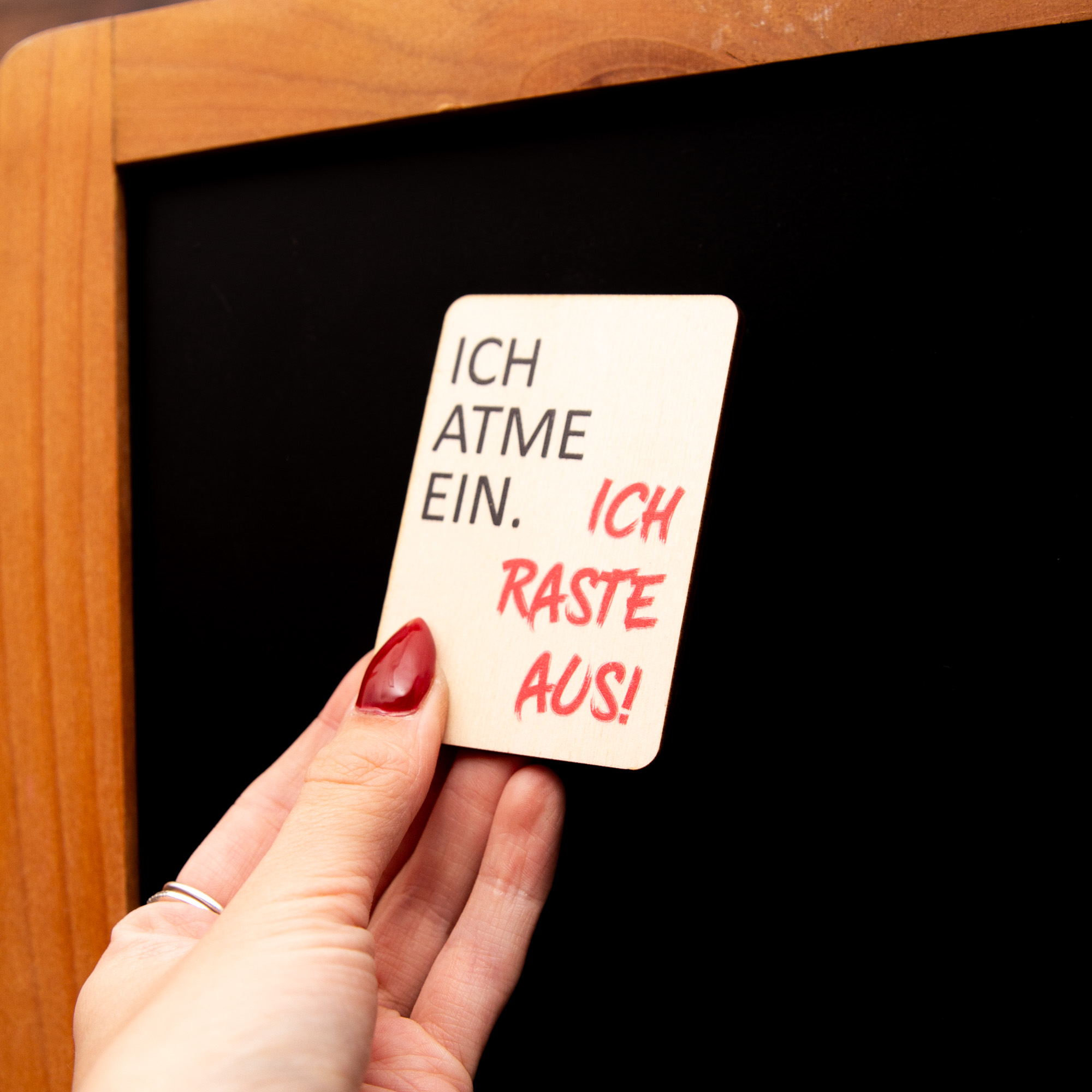 Holzmagnet „Ich atme ein ich raste aus“ – Witziger Kühlschrankmagnet Spruch – Geschenk für Kollegen & Freunde – Made in Leipzig