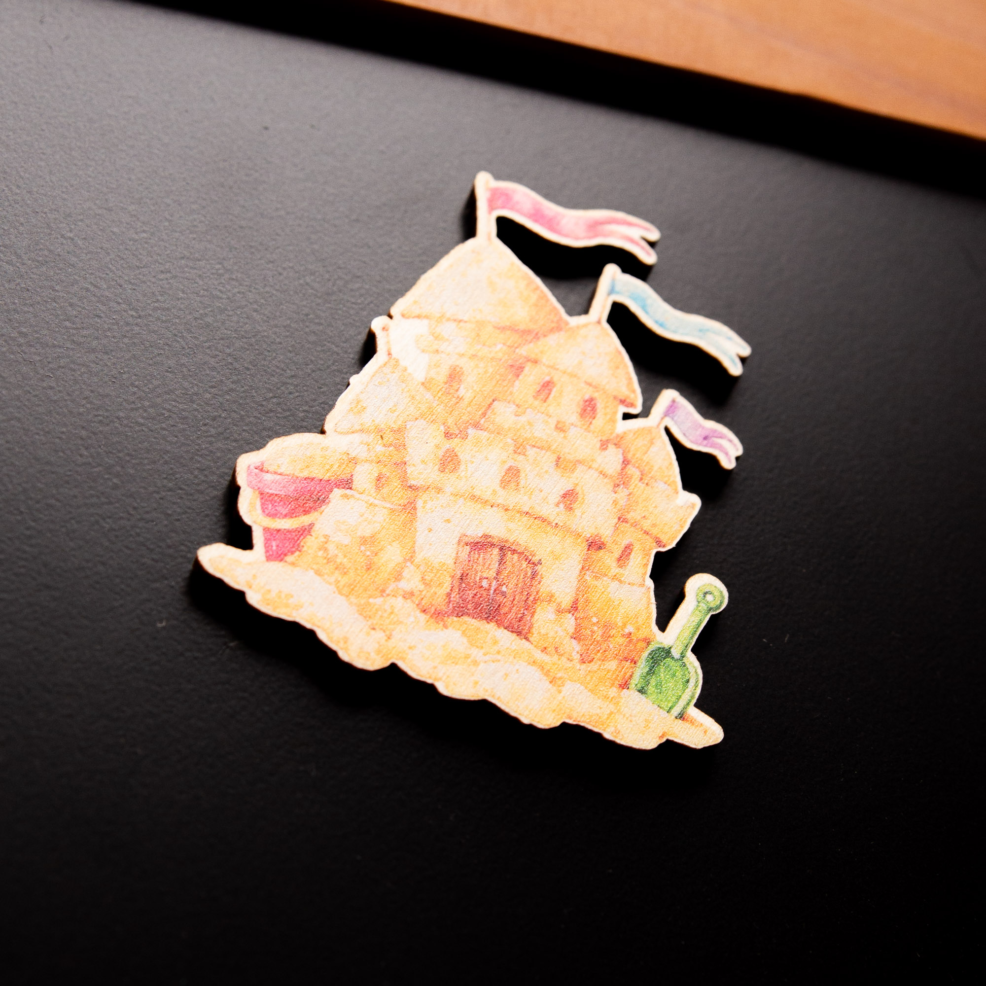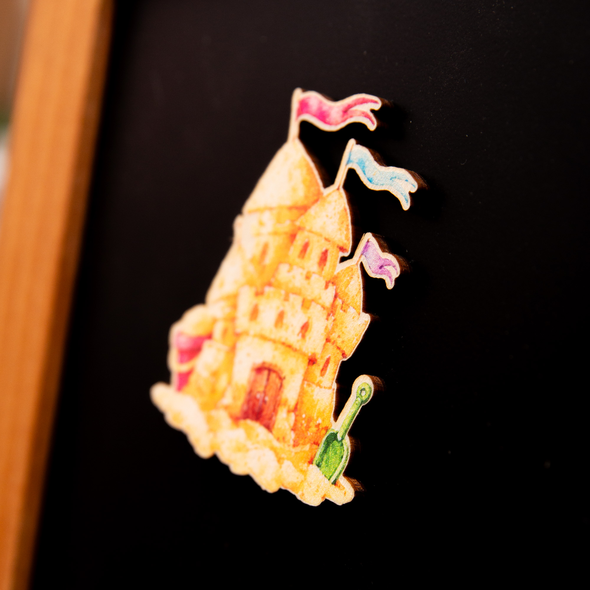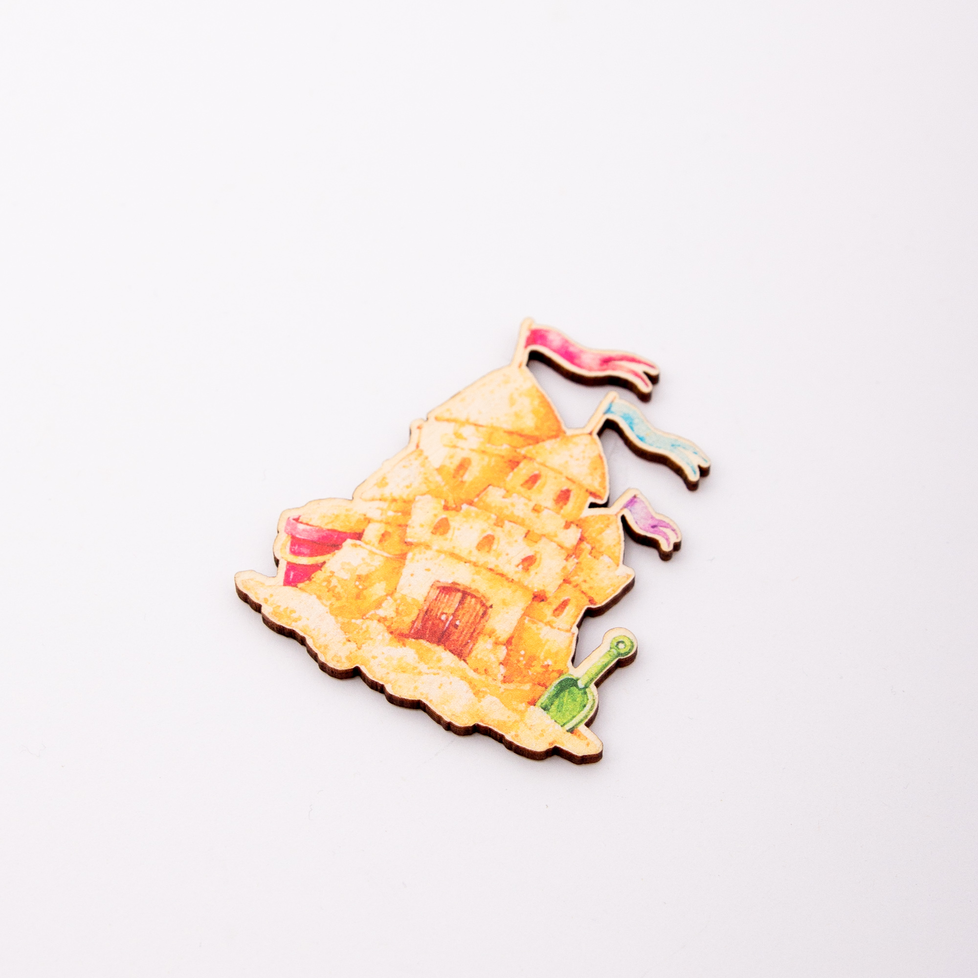 Holzmagnet Sandburg rund – Maritimer Kühlschrankmagnet aus Birkenholz – Küsten-Deko & Geschenk – Made in Leipzig