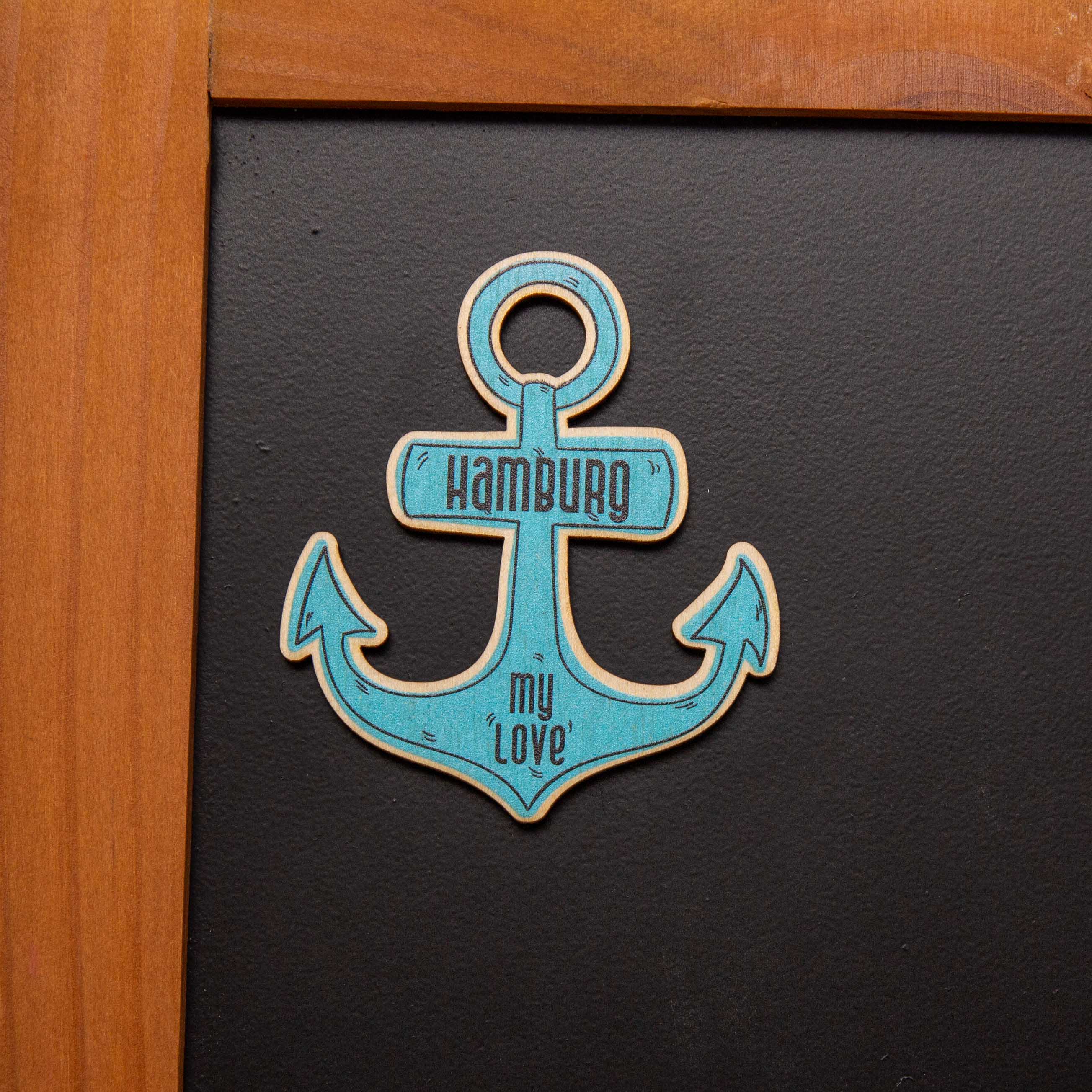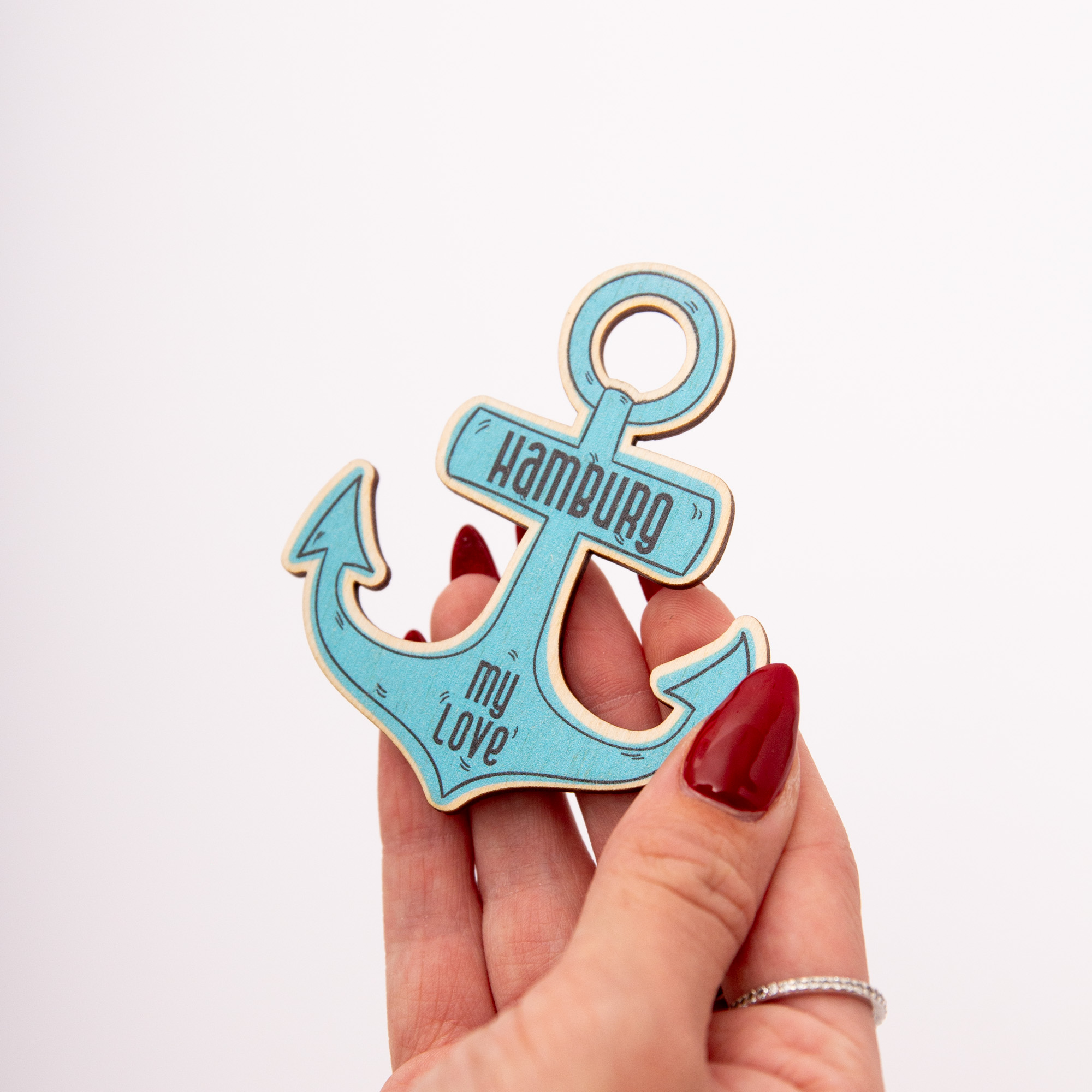 Anker lichten für deine Kühlschranktür! Unser runder Holzmagnet mit dem klassischen Anker-Motiv und dem Schriftzug „Hamburg my Love“ (beispielhaft) ist das perfekte Statement für alle Küstenkinder und Lokalpatrioten. Das Besondere: Du entscheidest, welcher Name deinen persönlichen Ankerplatz ziert! Ob Hamburg, deine Lieblingsinsel oder dein kleiner Heimatort – wir entwerfen für deinen Wunschort ein individuelles Design auf hochwertigem Birkenholz.