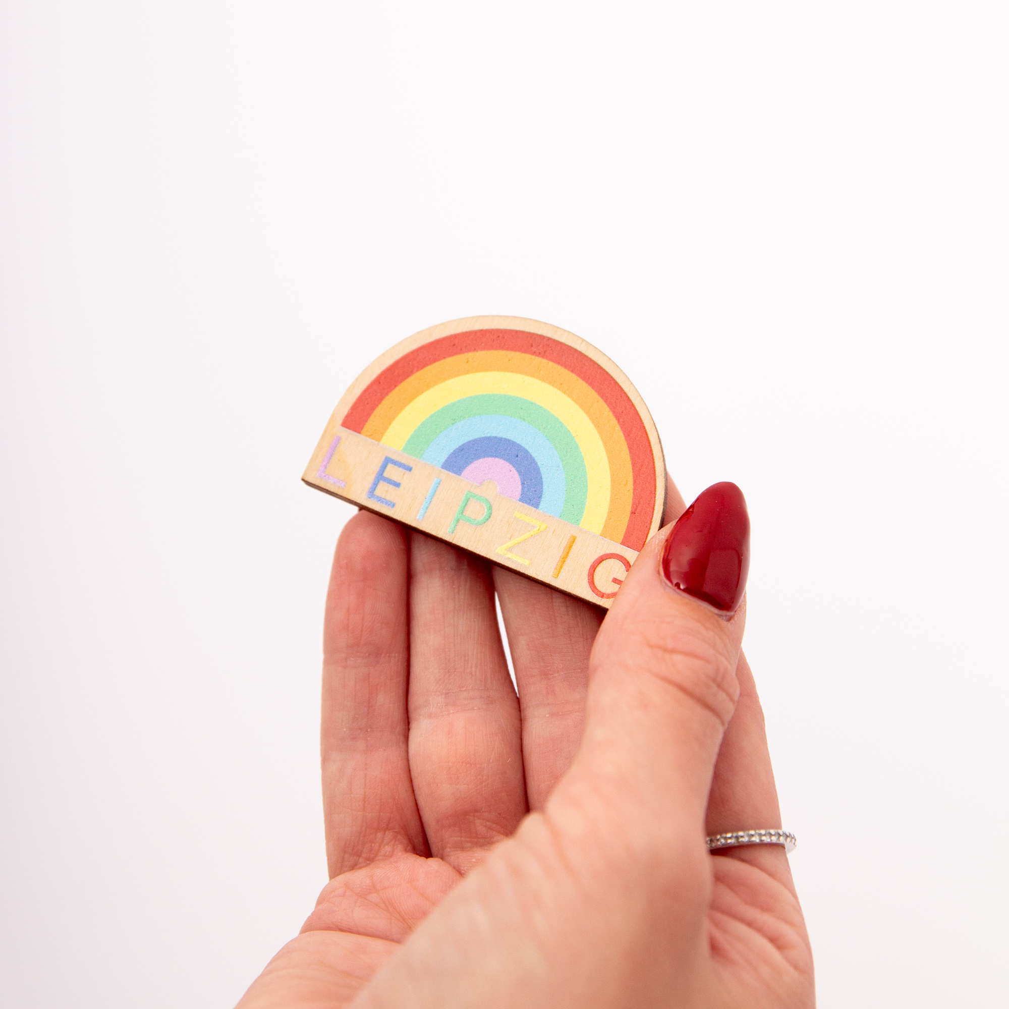 Bring Farbe an deine Kühlschranktür! Unser runder Holzmagnet mit dem fröhlichen Regenbogen-Motiv ist das perfekte Statement für alle, die ihren Lieblingsort mit einer Extraportion Optimismus feiern wollen. Das Besondere: Du entscheidest, welcher Name im Zentrum strahlt! Ob Leipzig, dein Geburtsort oder dein liebster Urlaubsspot – wir kombinieren deinen Wunschort mit moderner Typografie und zeitlosem Design.