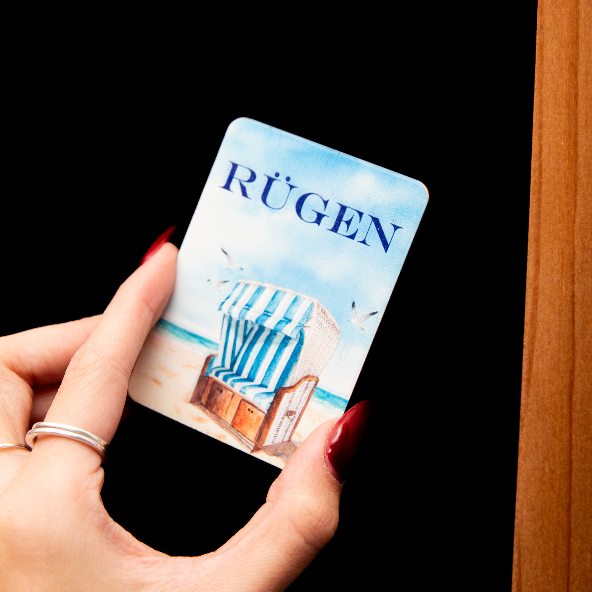 Urlaub ist da, wo dein Strandkorb steht! Unser rechteckiger Holzmagnet mit dem klassischen Strandkorb-Motiv holt dir die gemütliche Küsten-Atmosphäre direkt nach Hause. Das Besondere: Du entscheidest, welcher Wunschort auf dem Magneten verewigt wird! Ob Kühlungsborn, Borkum, dein liebster Urlaubsort oder einfach dein ganz persönlicher „Lieblingsplatz“ – wir kombinieren das maritime Design mit deiner individuellen Widmung auf hochwertigem Birkenholz.