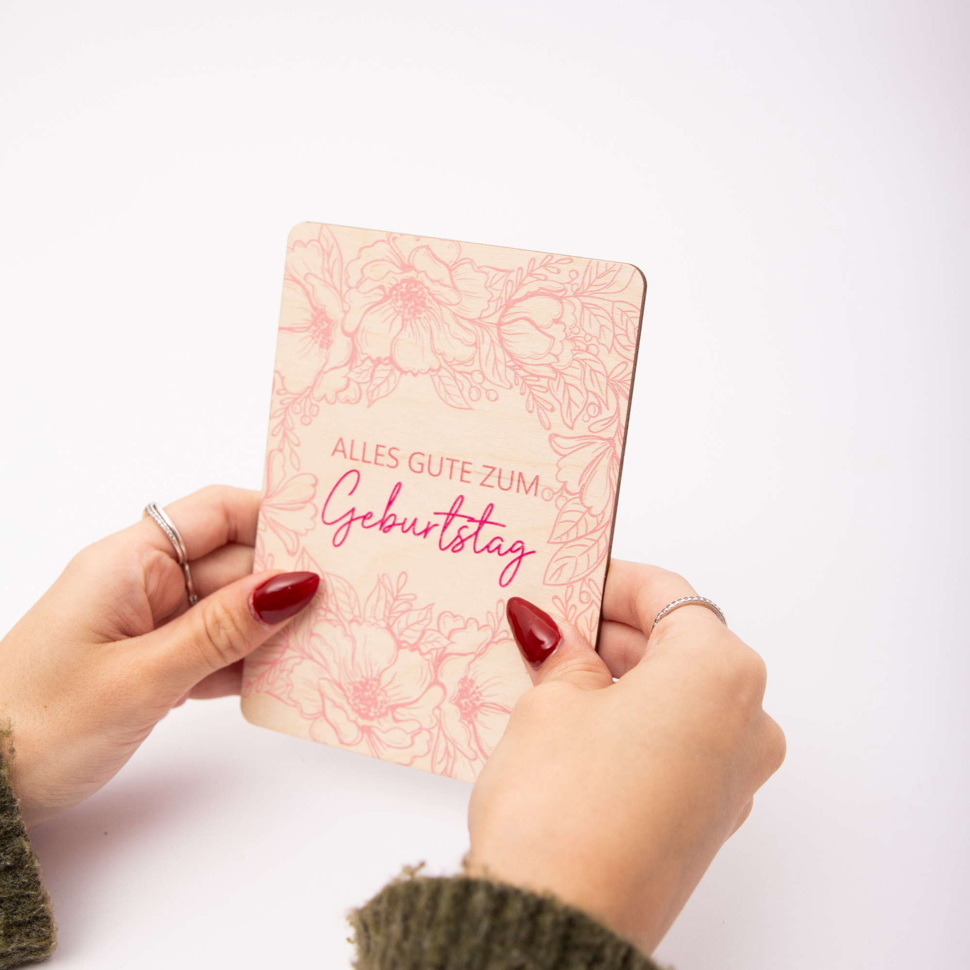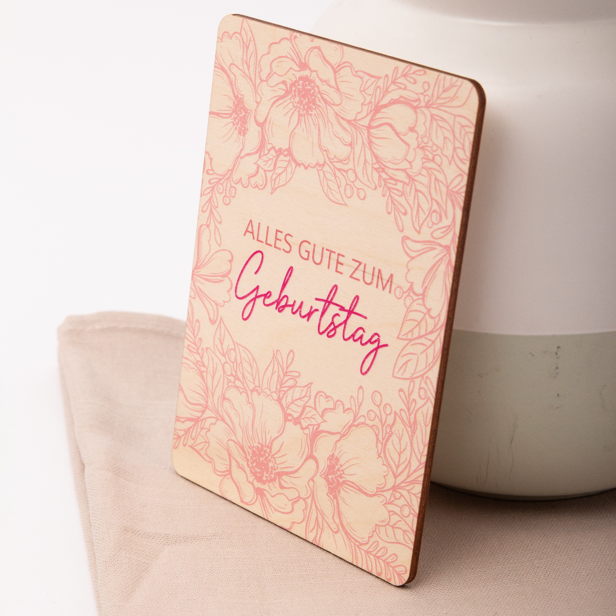 Einzigartige Haptik: Gefertigt aus 3 mm starkem, hellem Birkenholz. Die feine, natürliche Maserung des Holzes macht jede Karte zu einem Unikat und verleiht ihr eine besonders hochwertige, warme Ausstrahlung.
