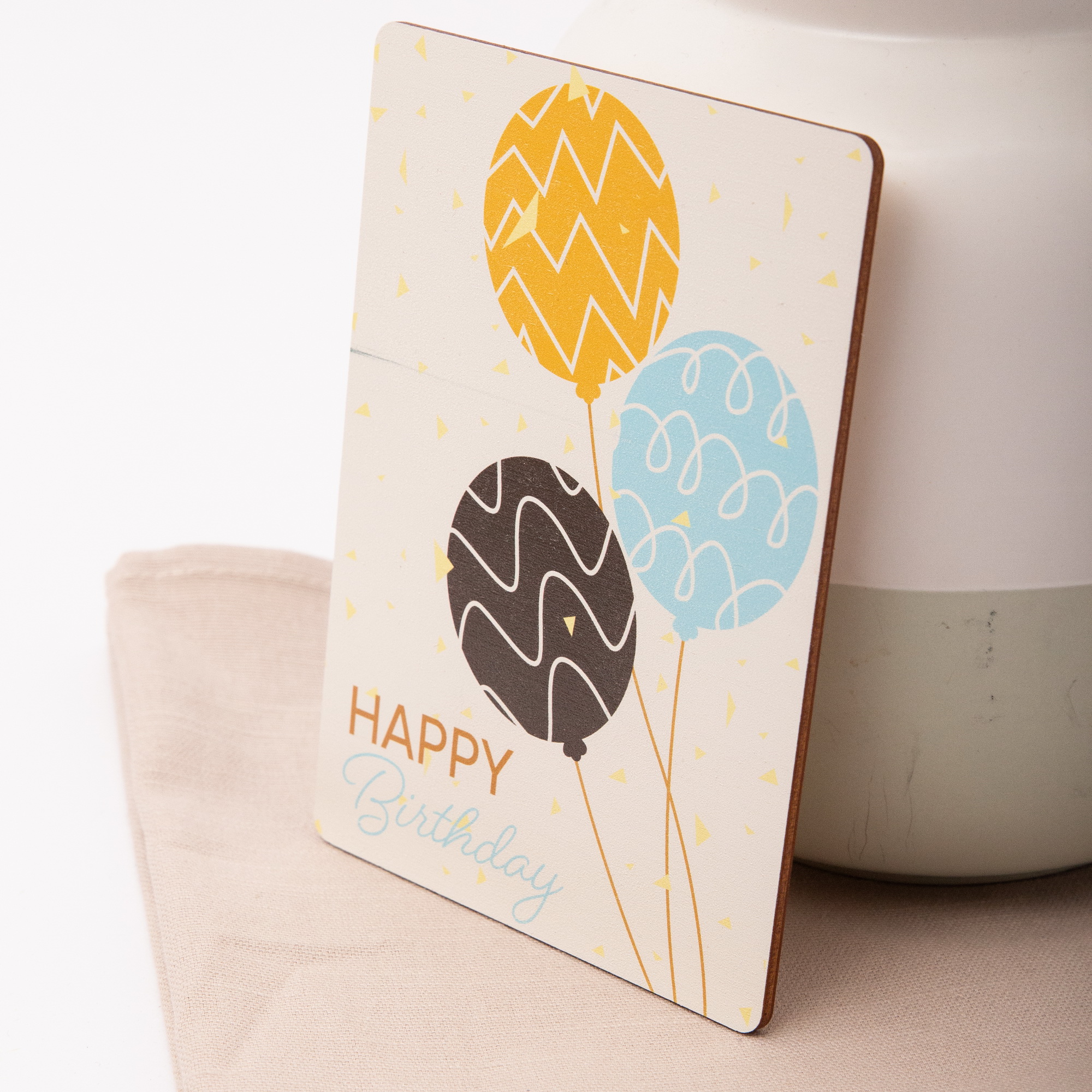 Ein Geburtstag ist der perfekte Anlass für eine Botschaft, die bleibt! Unsere Holzpostkarte mit dem klassischen Schriftzug „Happy Birthday“ und den fröhlichen Luftballon-Motiven bringt Farbe und Freude in jeden Briefkasten. Im Gegensatz zu herkömmlichen Papierkarten ist diese Karte aus echtem Birkenholz ein haptisches Erlebnis und ein langlebiges Geschenk, das auch nach der großen Party als stilvolle Dekoration im Regal oder am Kühlschrank an den Ehrentag erinnert.