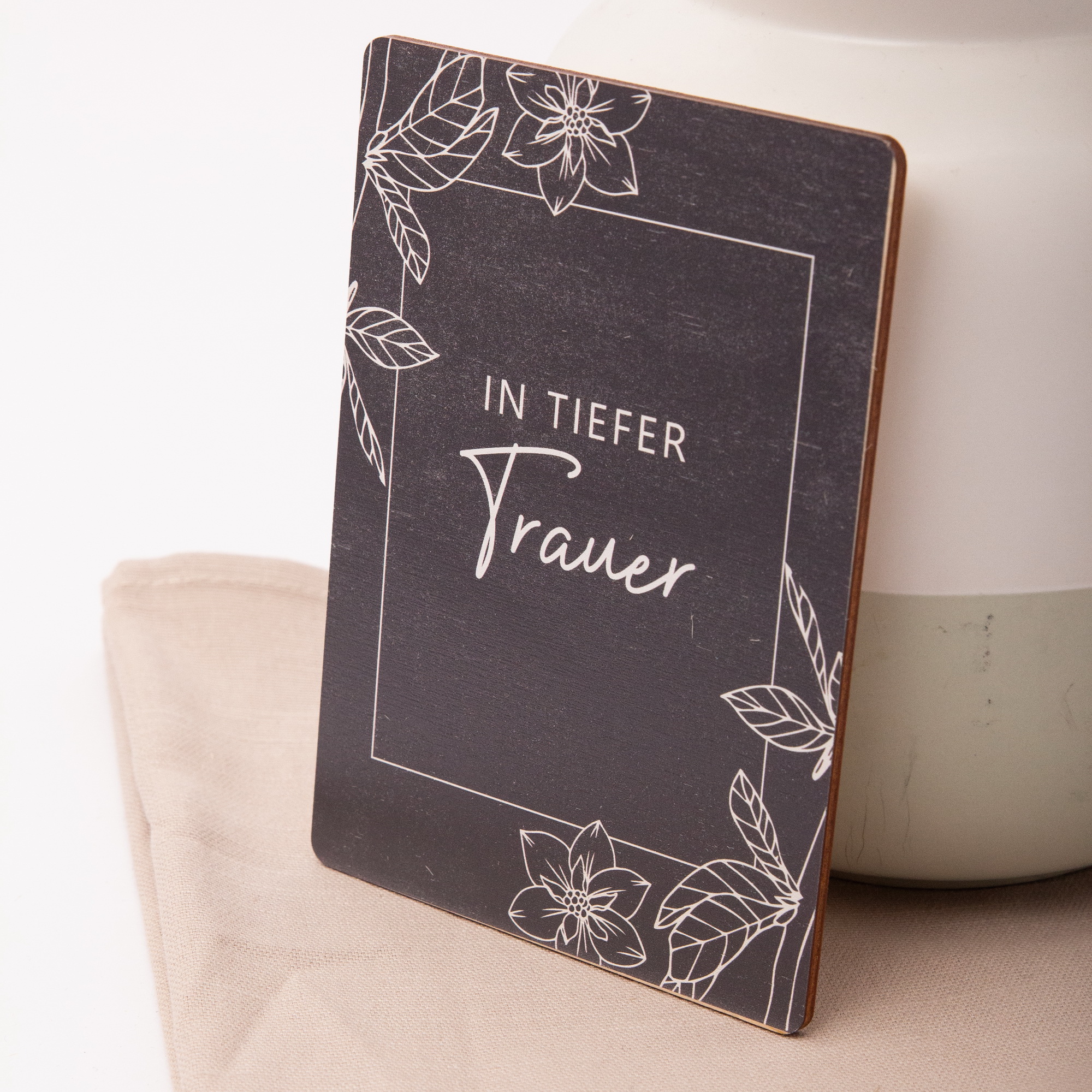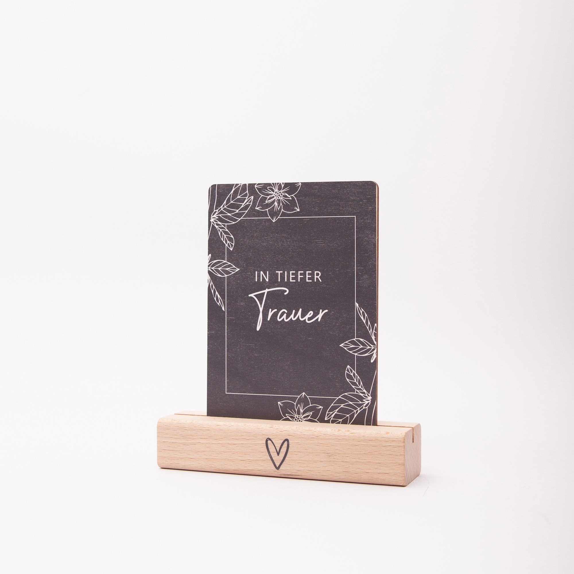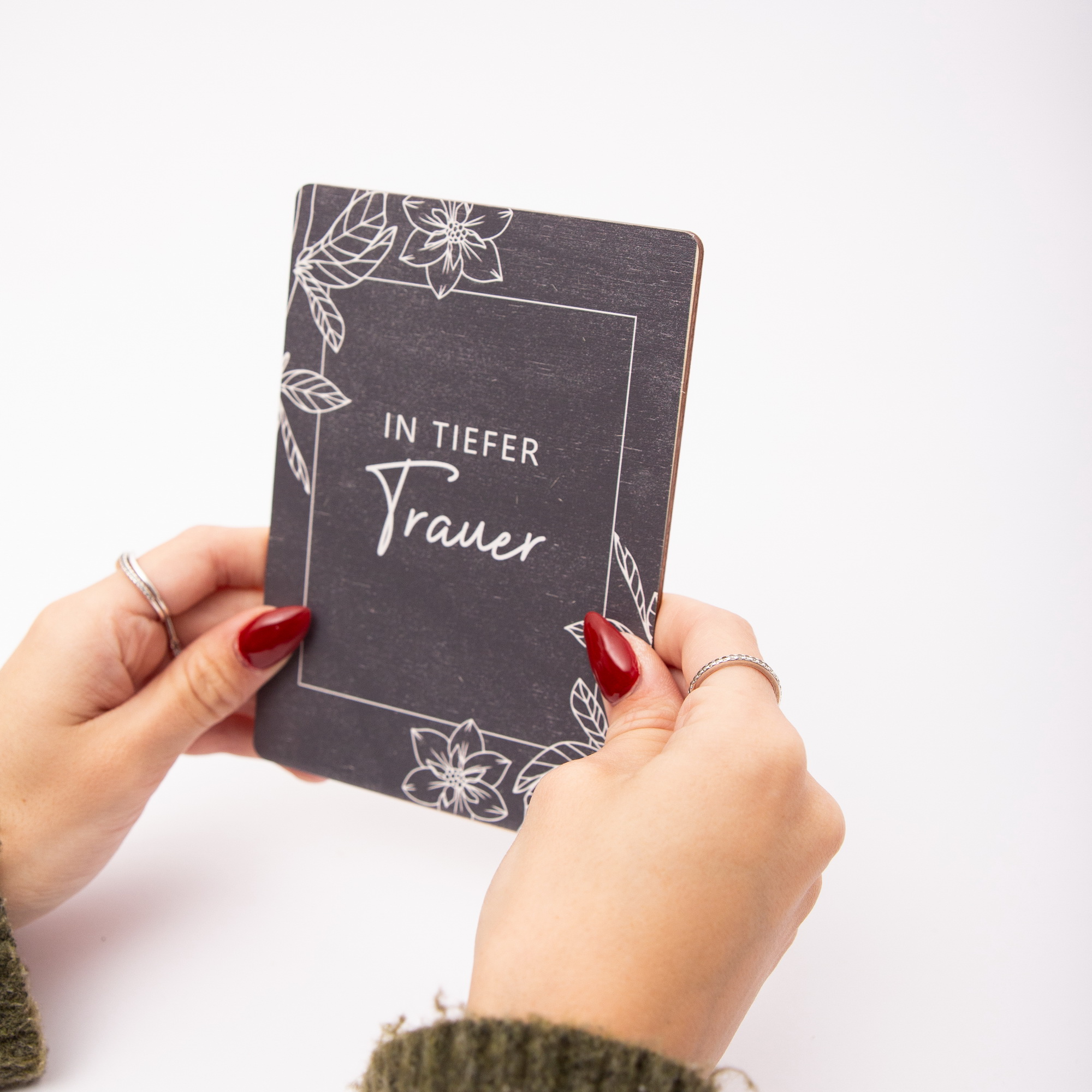 Holzpostkarte „In tiefer Trauer“ – Edle Trauerkarte aus Birkenholz A6 – Beileidskarte & Trostspender