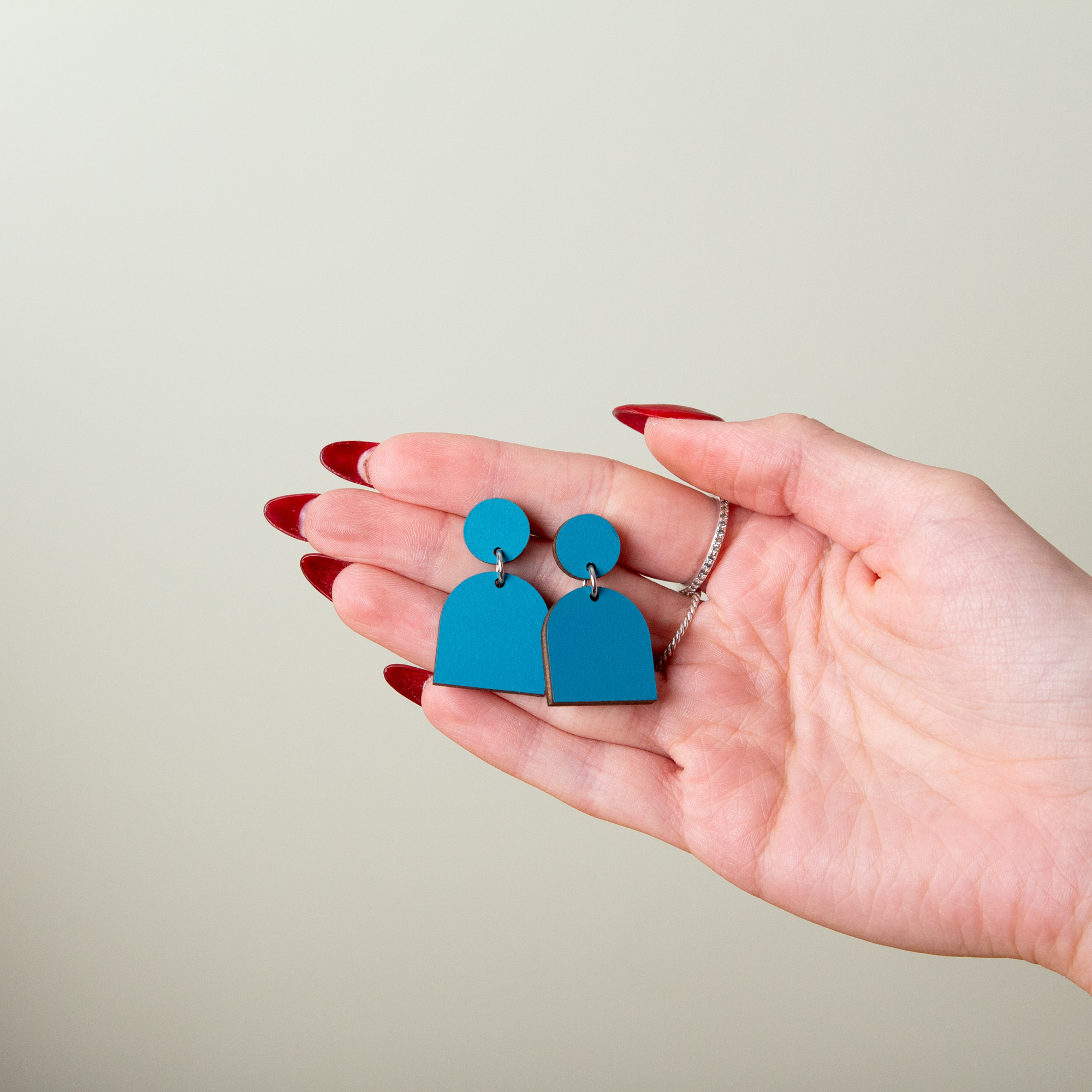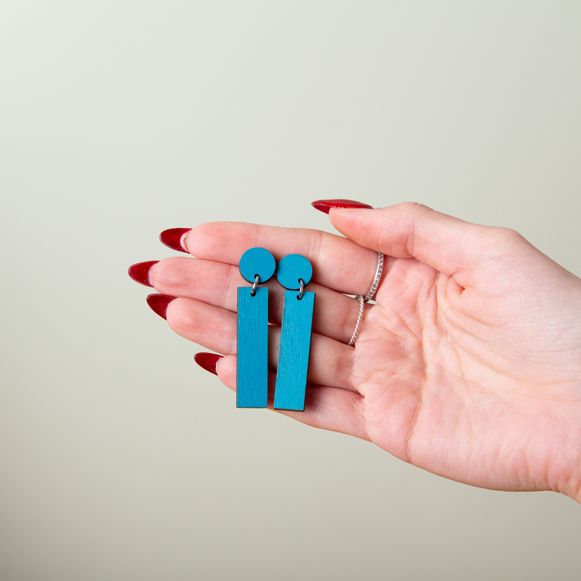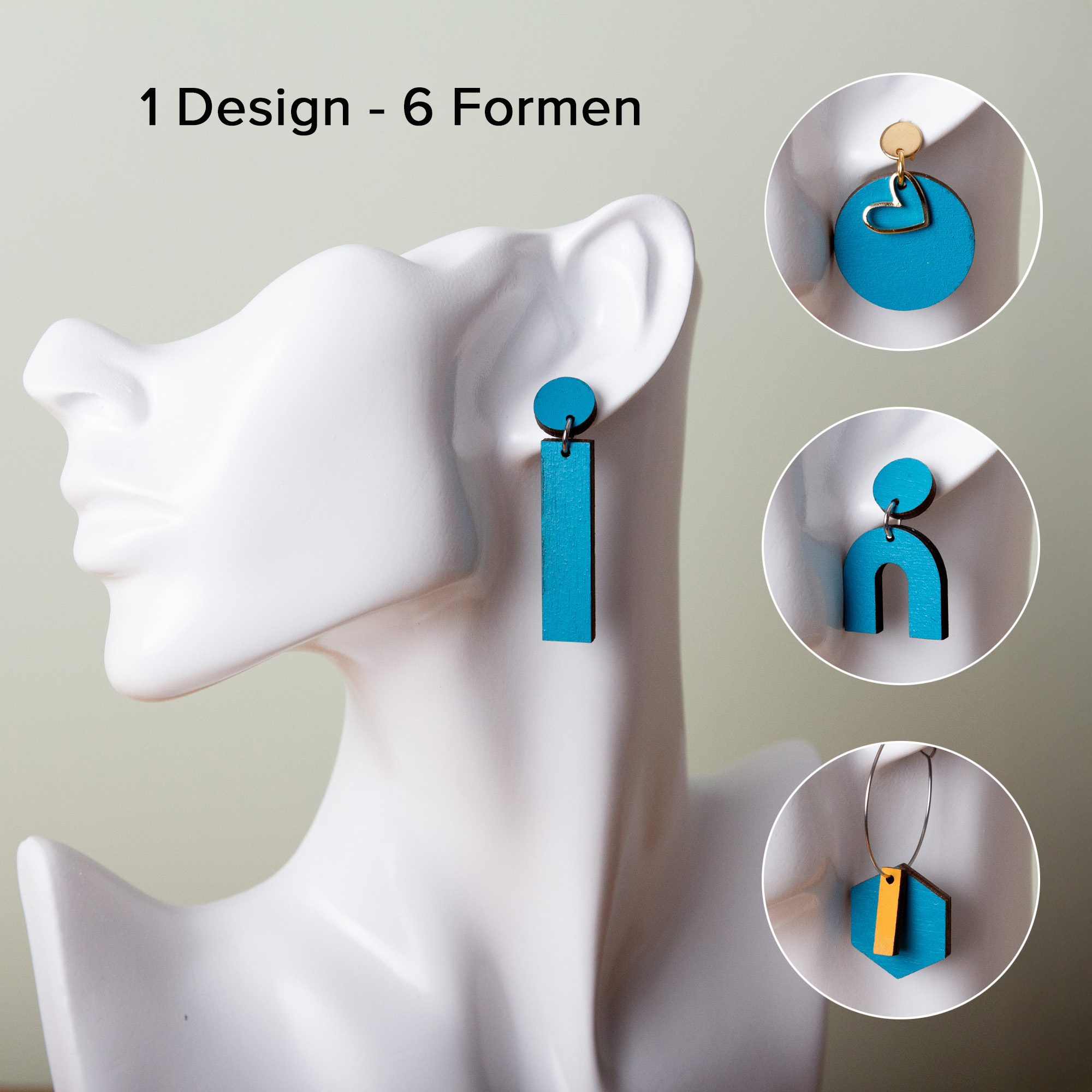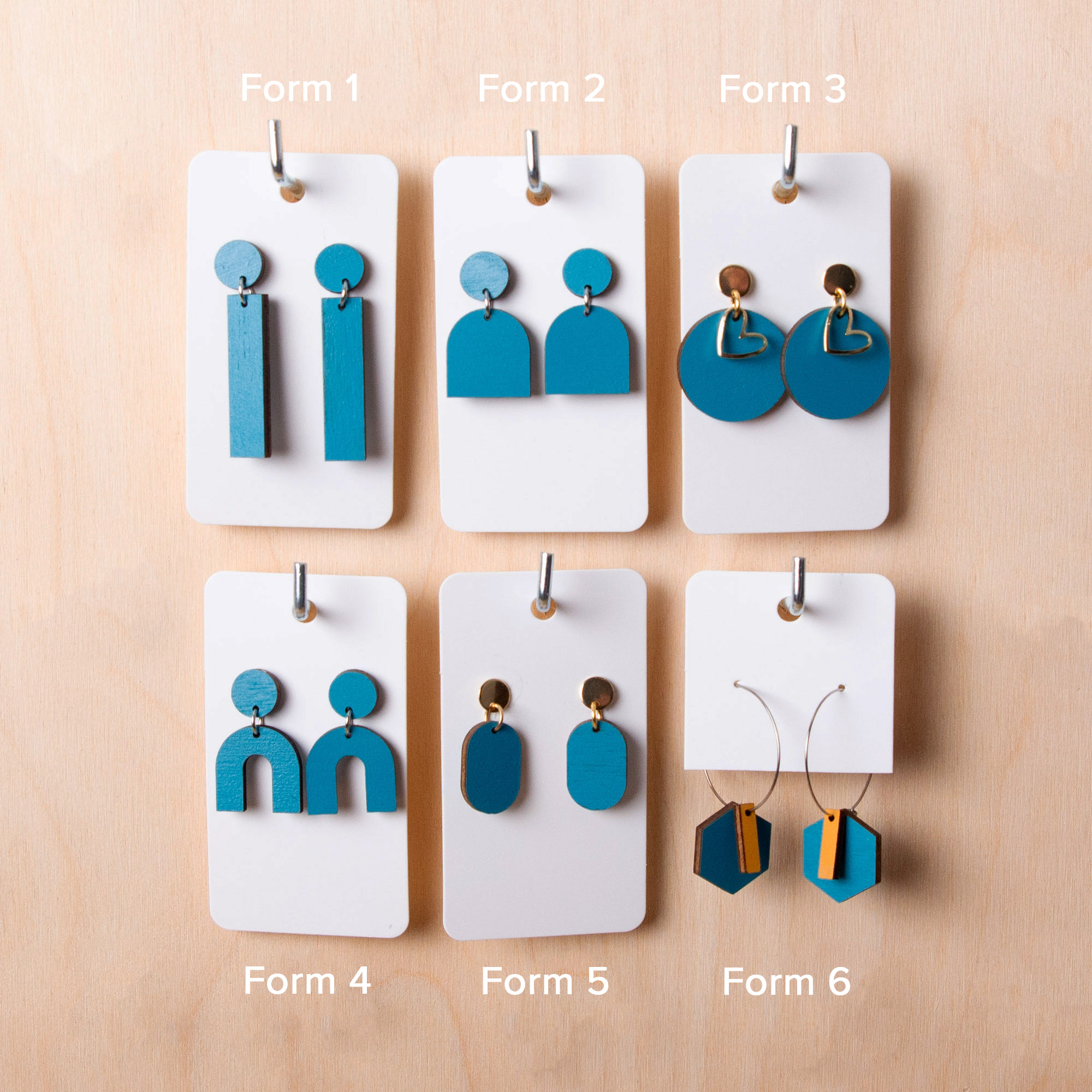 Geometrische Holzohrringe „PETROL“ – Handgefertigte Design-Ohrstecker in 6 Varianten – Ultraleicht & Nachhaltig – Made in Leipzig