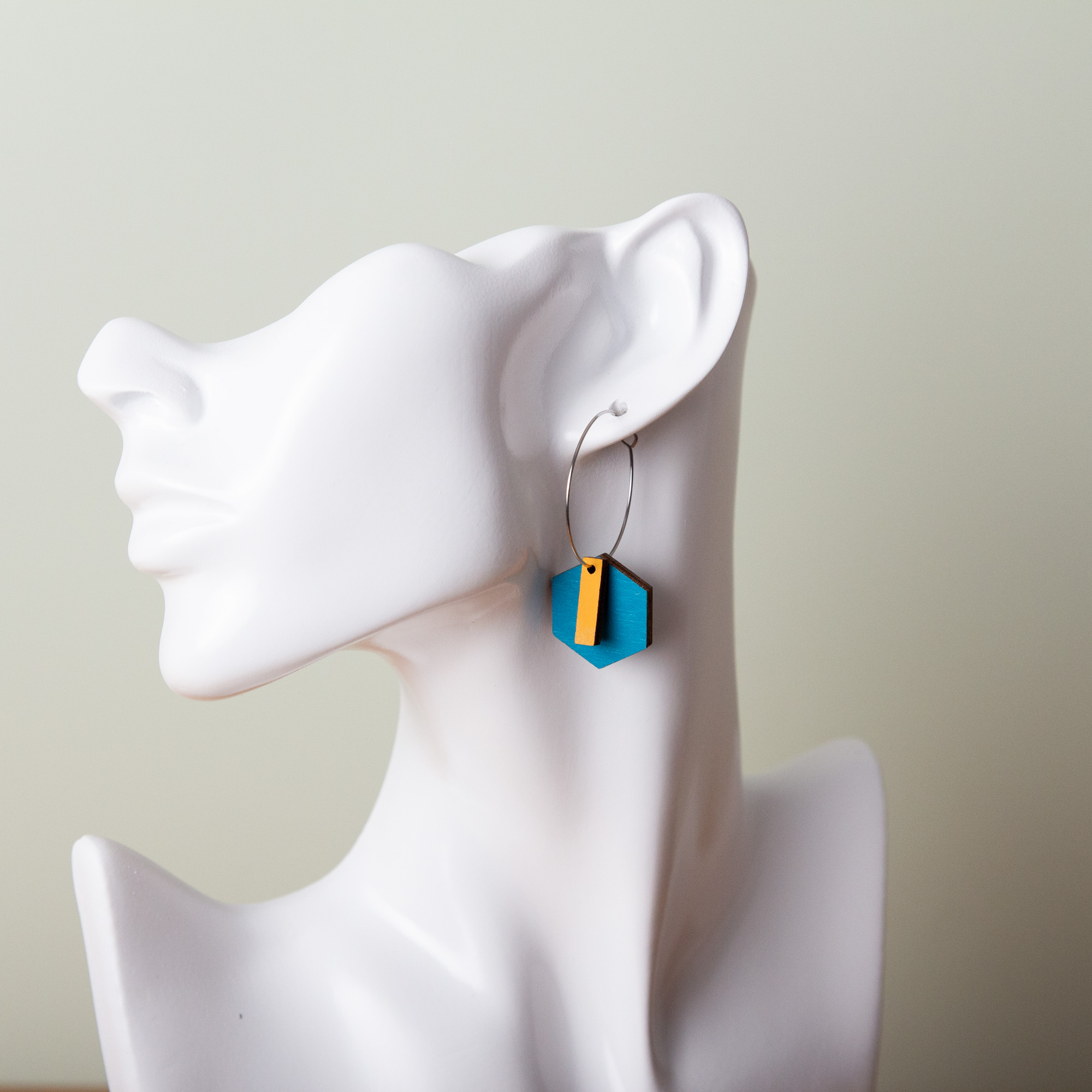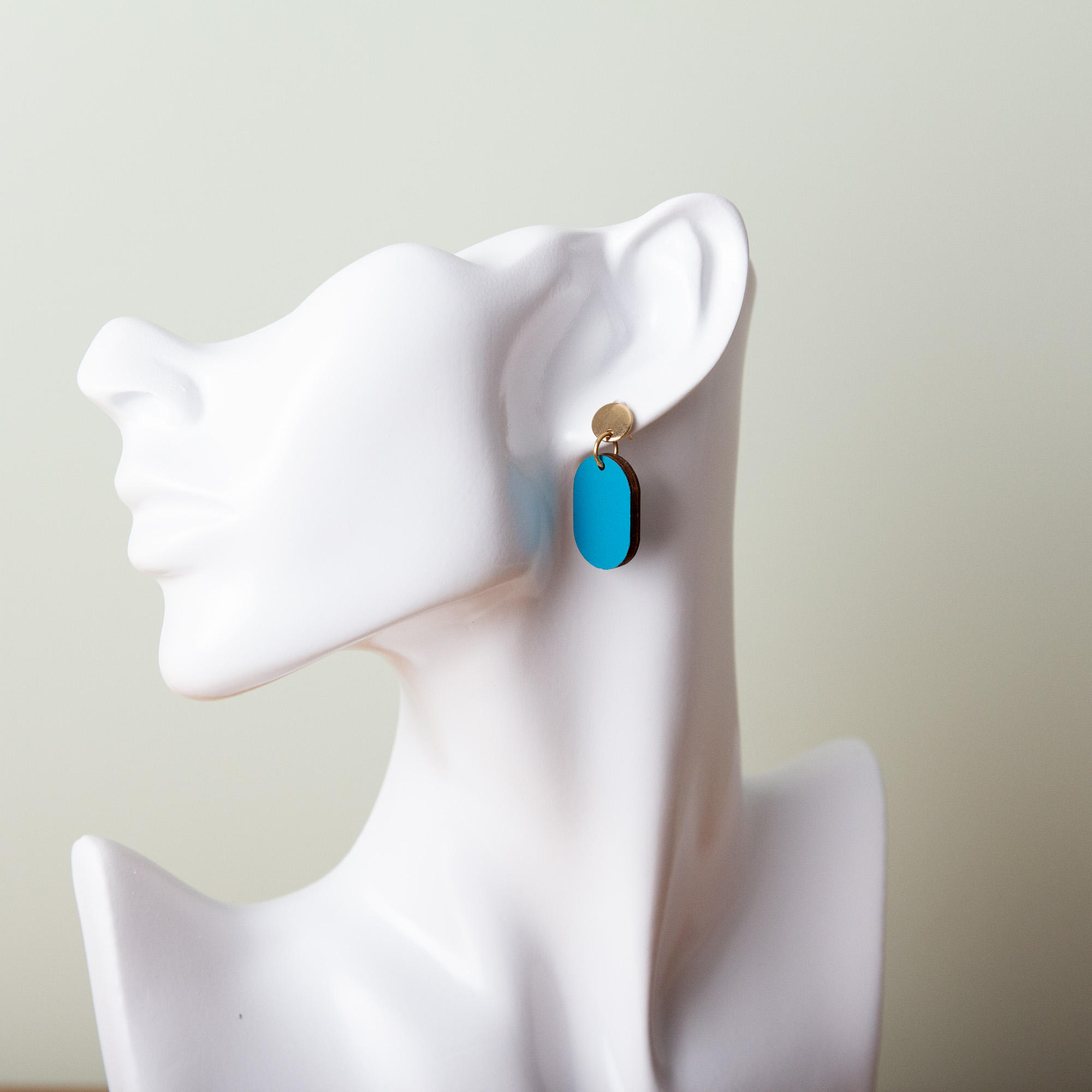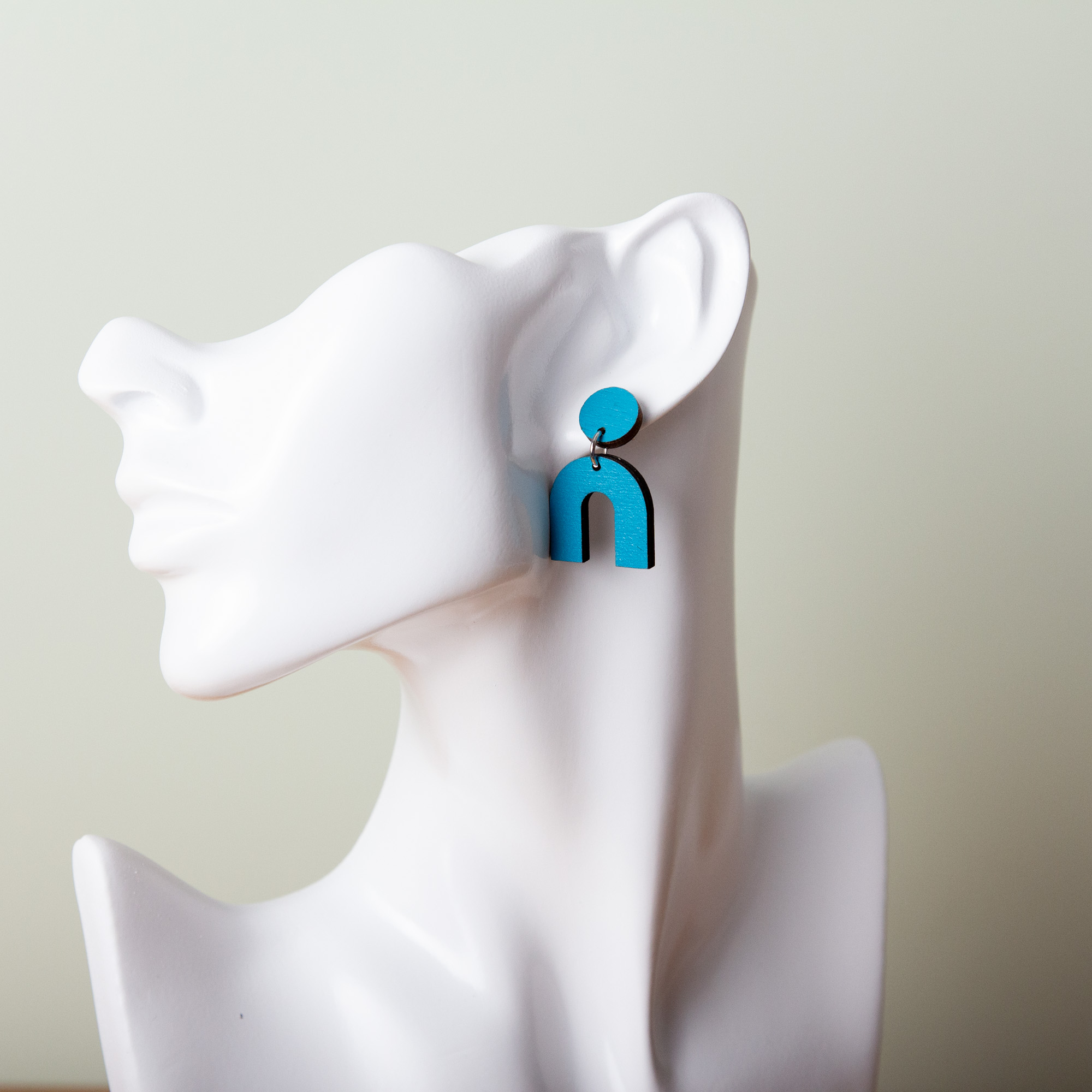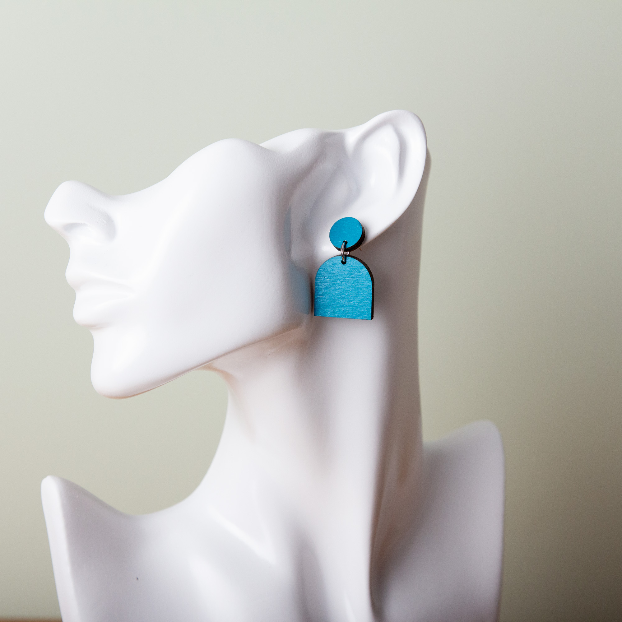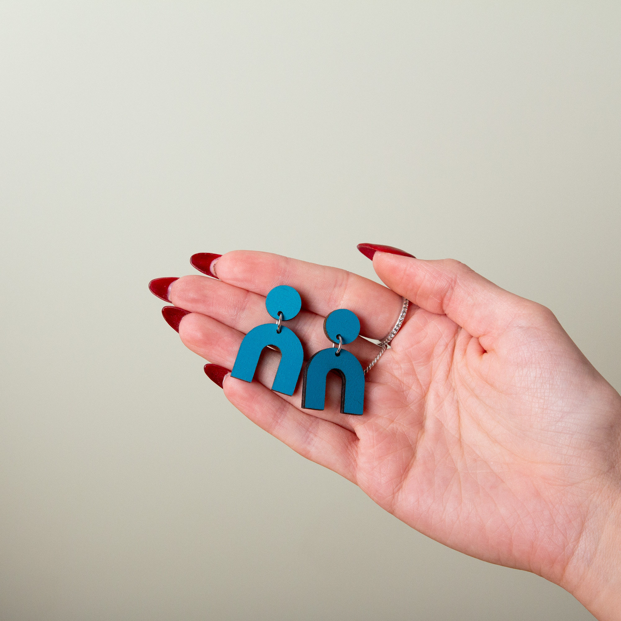 Geometrische Holzohrringe „PETROL“ – Handgefertigte Design-Ohrstecker in 6 Varianten – Ultraleicht & Nachhaltig – Made in Leipzig