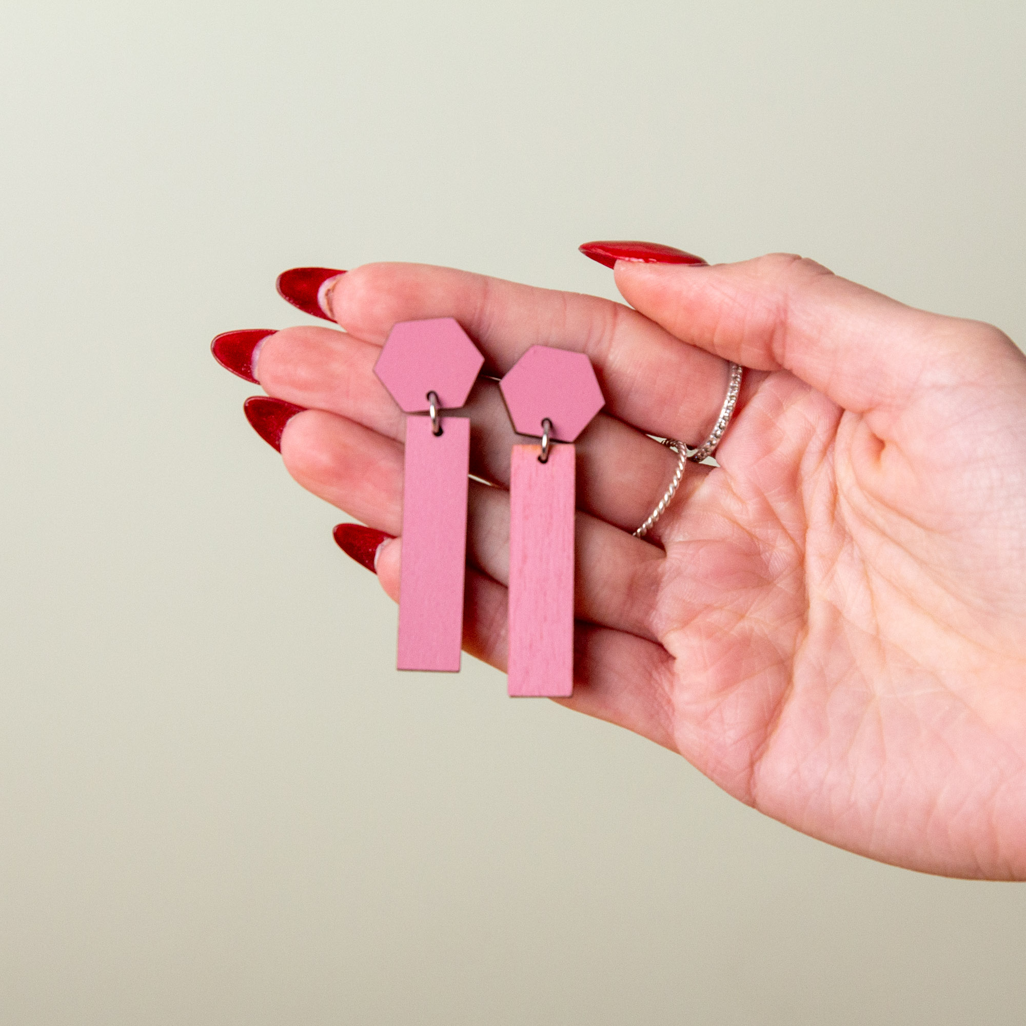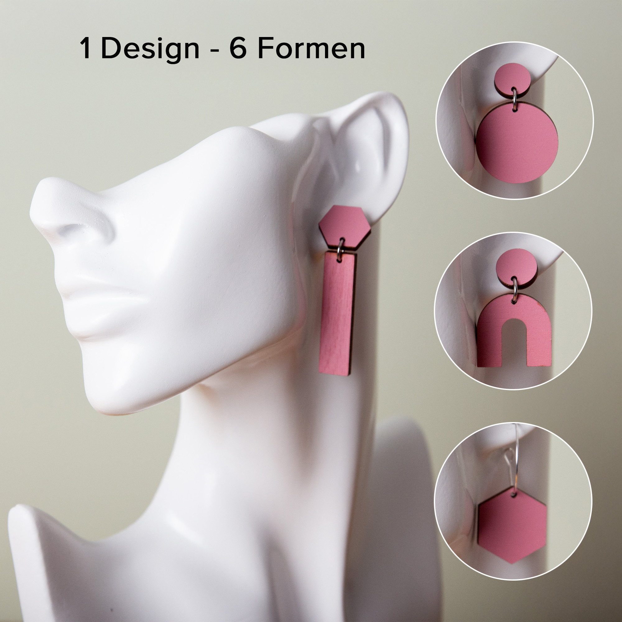 Geometrische Holzohrringe „ROSA“ – Handgefertigte Design-Ohrstecker in 6 Varianten – Ultraleicht & Nachhaltig – Made in Leipzig