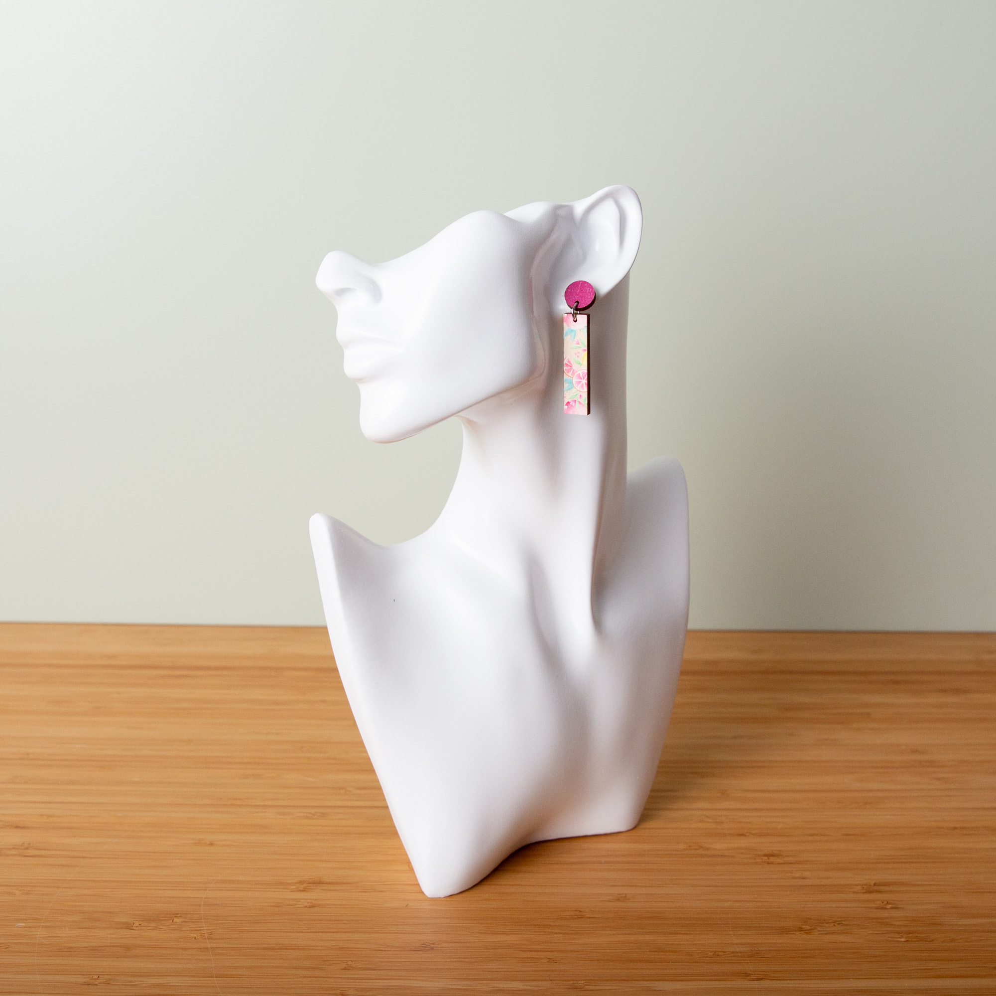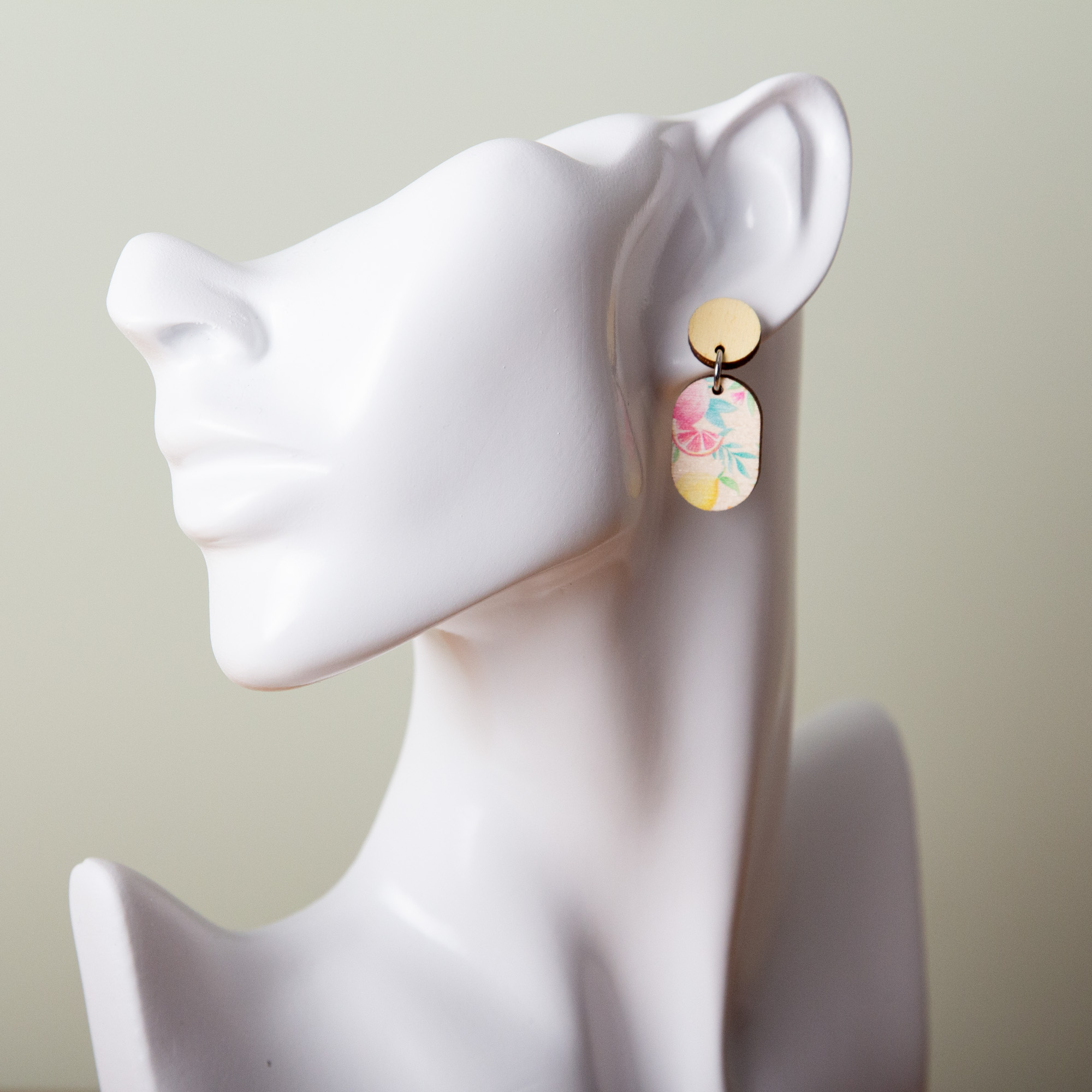 Bringe sommerliche Leichtigkeit in deinen Alltag! Unsere Citrus-Serie ist das perfekte Accessoire für alle, die Lust auf lebendige Farben und fruchtige Akzente haben. Wir haben natürliches Holz mit einem detailverliebten Print aus gelben Zitronen und rosaroten Grapefruits kombiniert – ein echter Energiekicker für dein Gesicht. Jedes Schmuckstück entsteht mit viel Sorgfalt und handwerklichem Geschick in unserer Werkstatt in Leipzig.